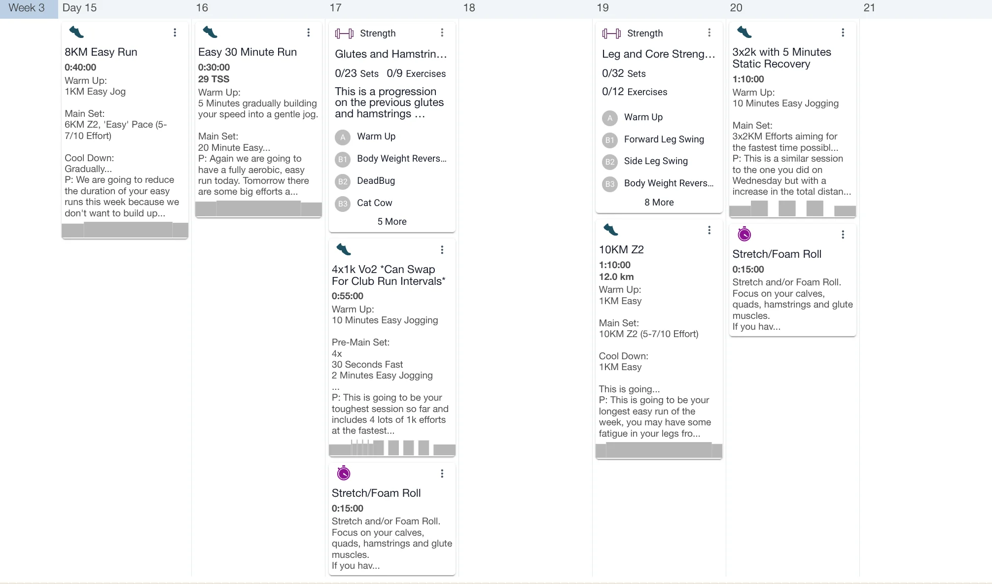 Training sessions are written in an optimal order for improvement, progression and recovery, but plans change and when they do you can move sessions across days and weeks with a premium training peaks account.