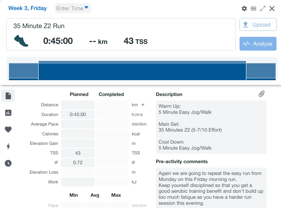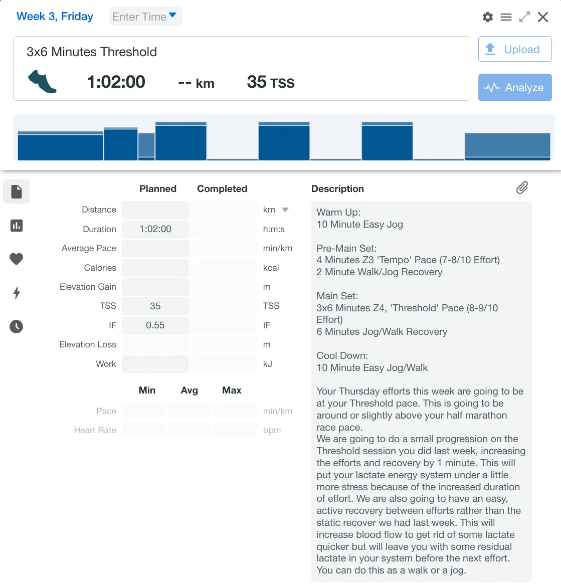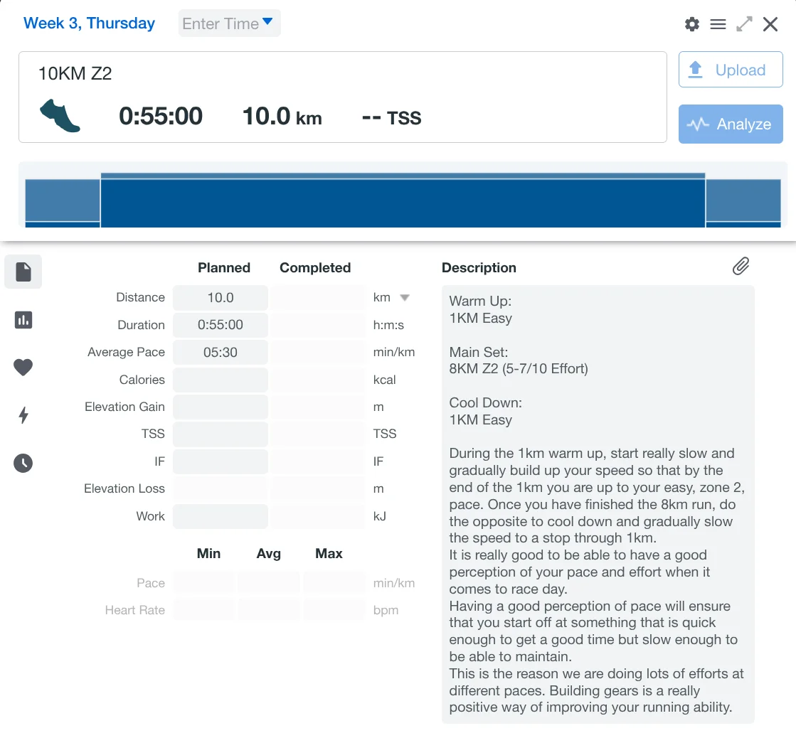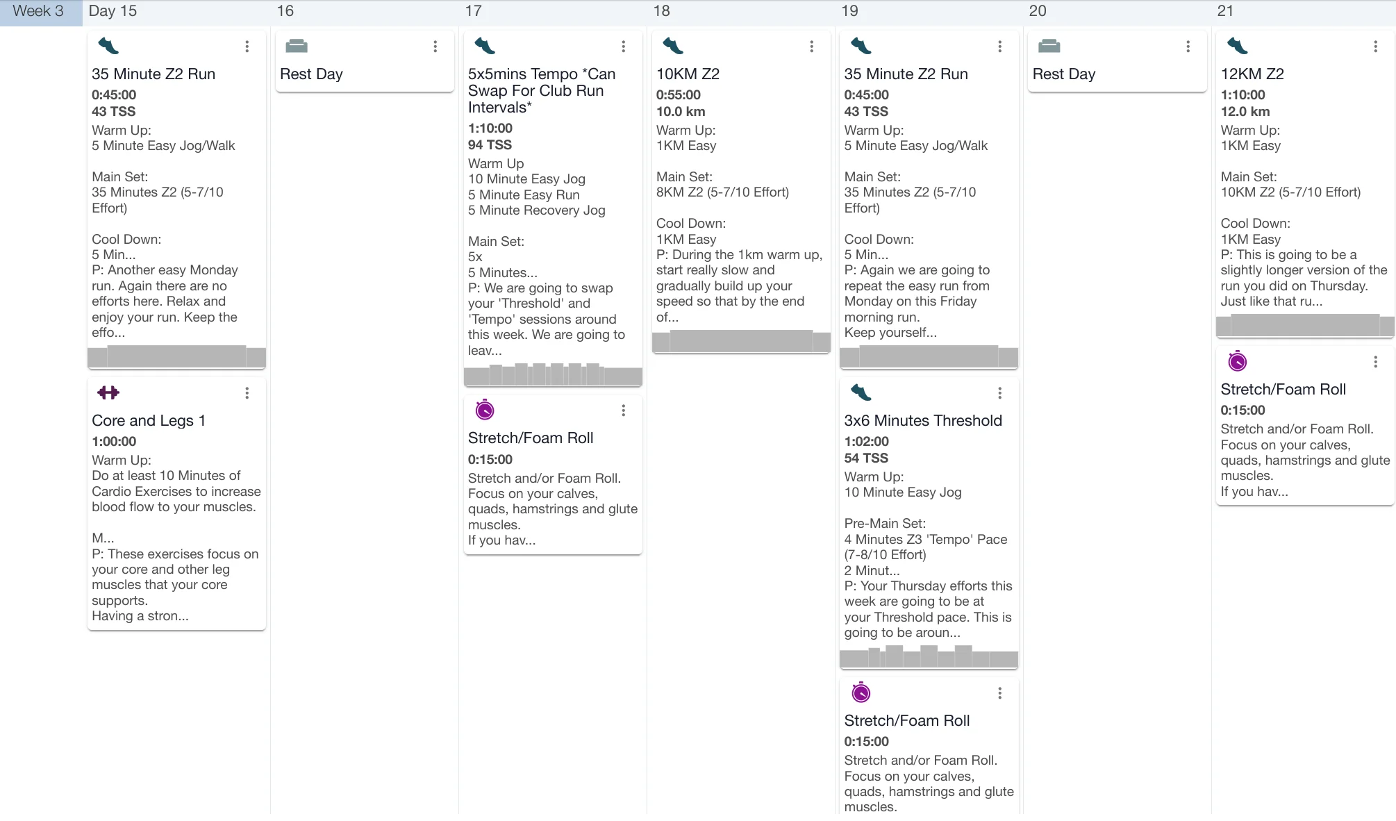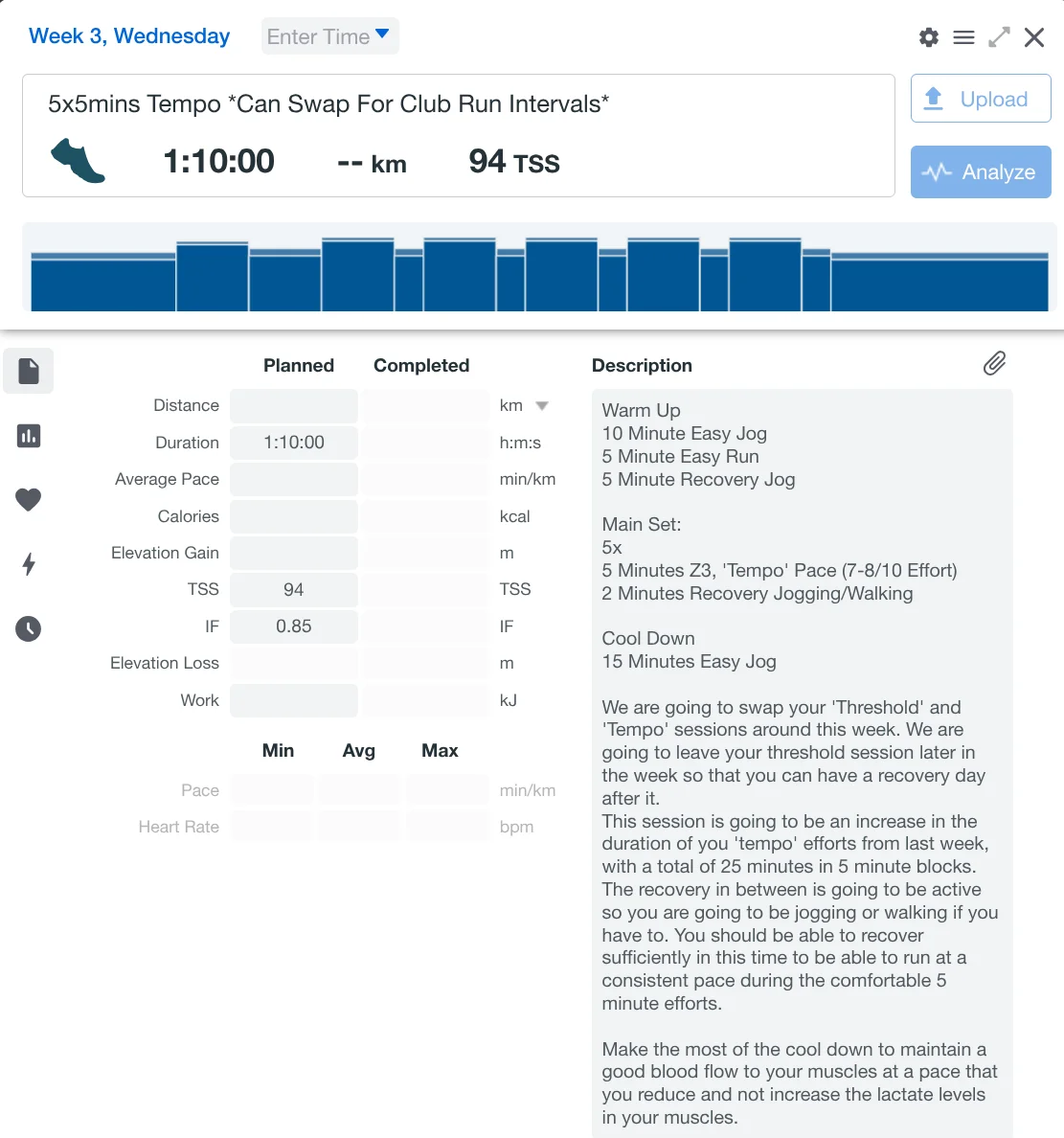 Training sessions are written in an optimal order for improvement, progression and recovery, but plans change and when they do you can move sessions across days and weeks with a premium training peaks account.