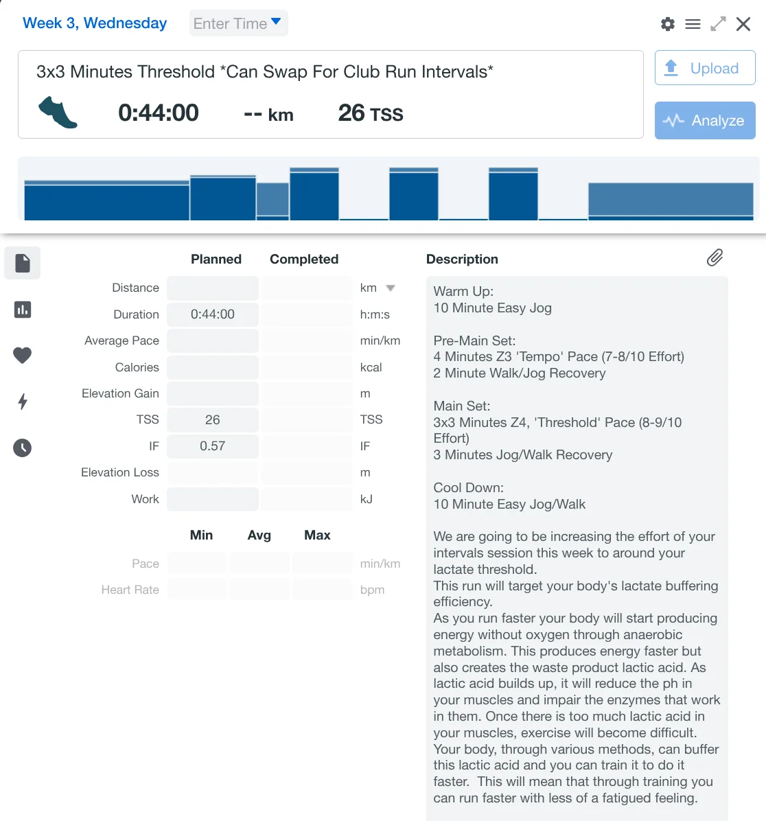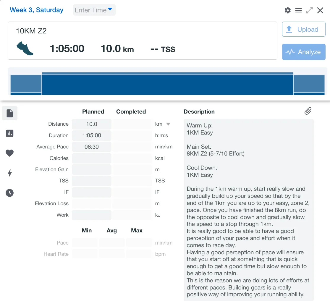 Training sessions are written in an optimal order for improvement, progression and recovery, but plans change and when they do you can move sessions across days and weeks with a premium training peaks account.