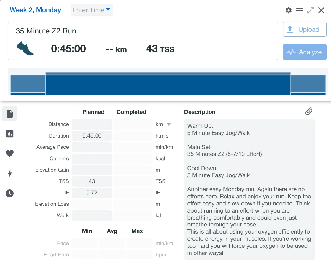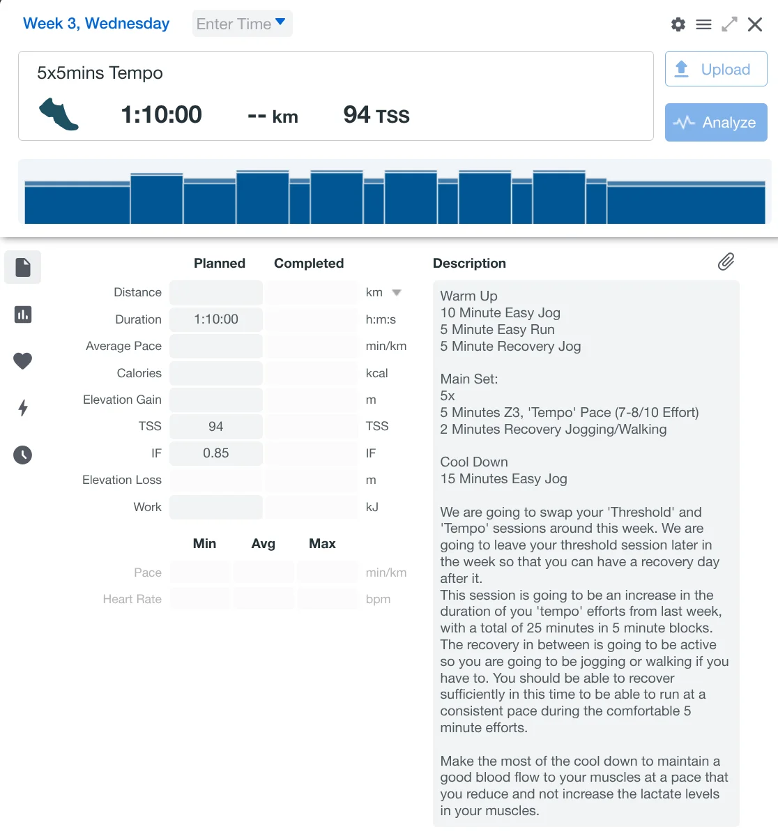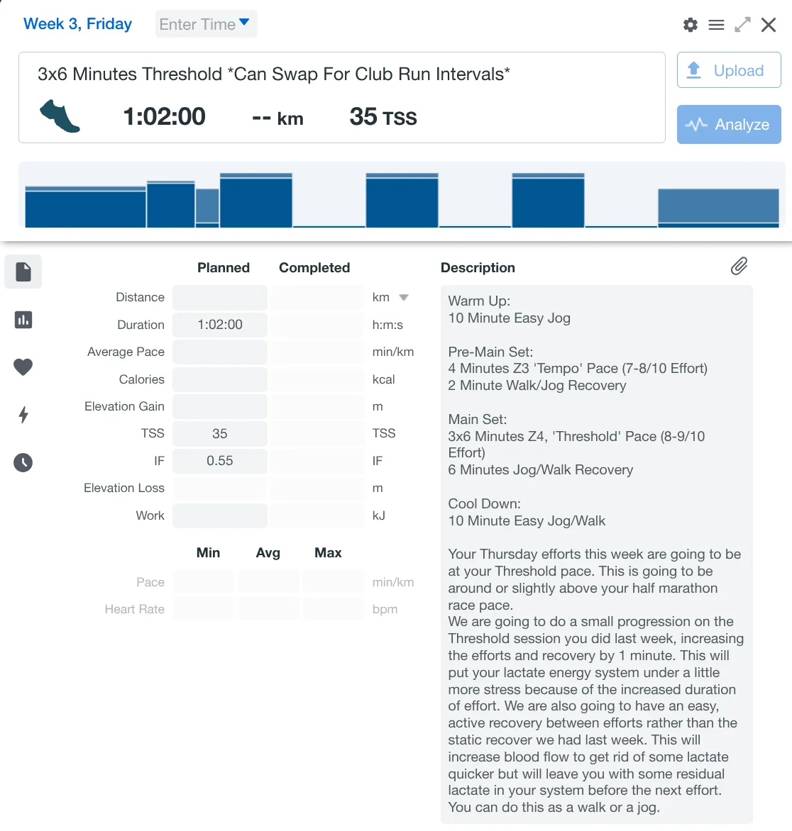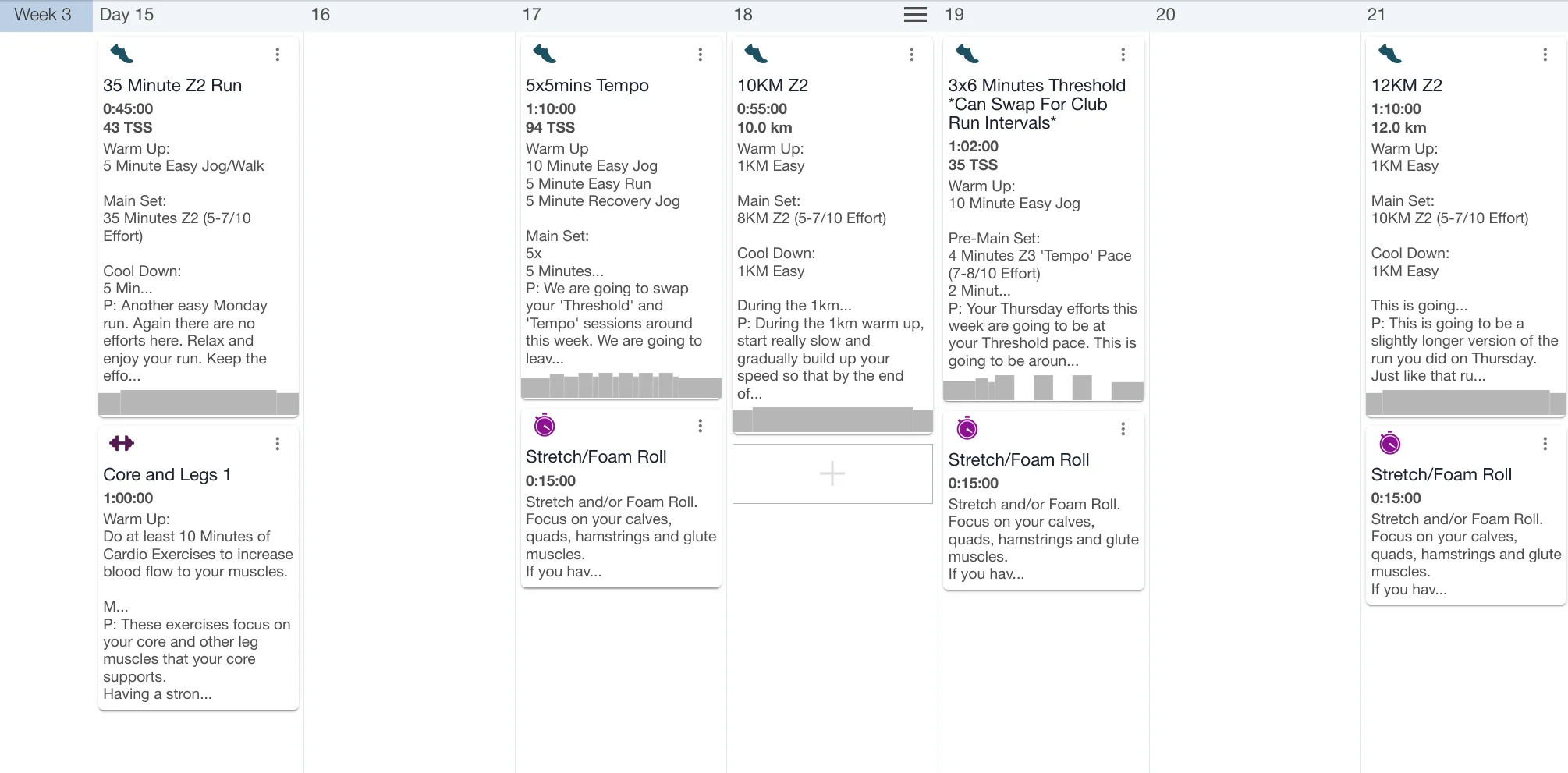 Training sessions are written in an optimal order for improvement, progression and recovery, but plans change and when they do you can move sessions across days and weeks with a premium training peaks account.