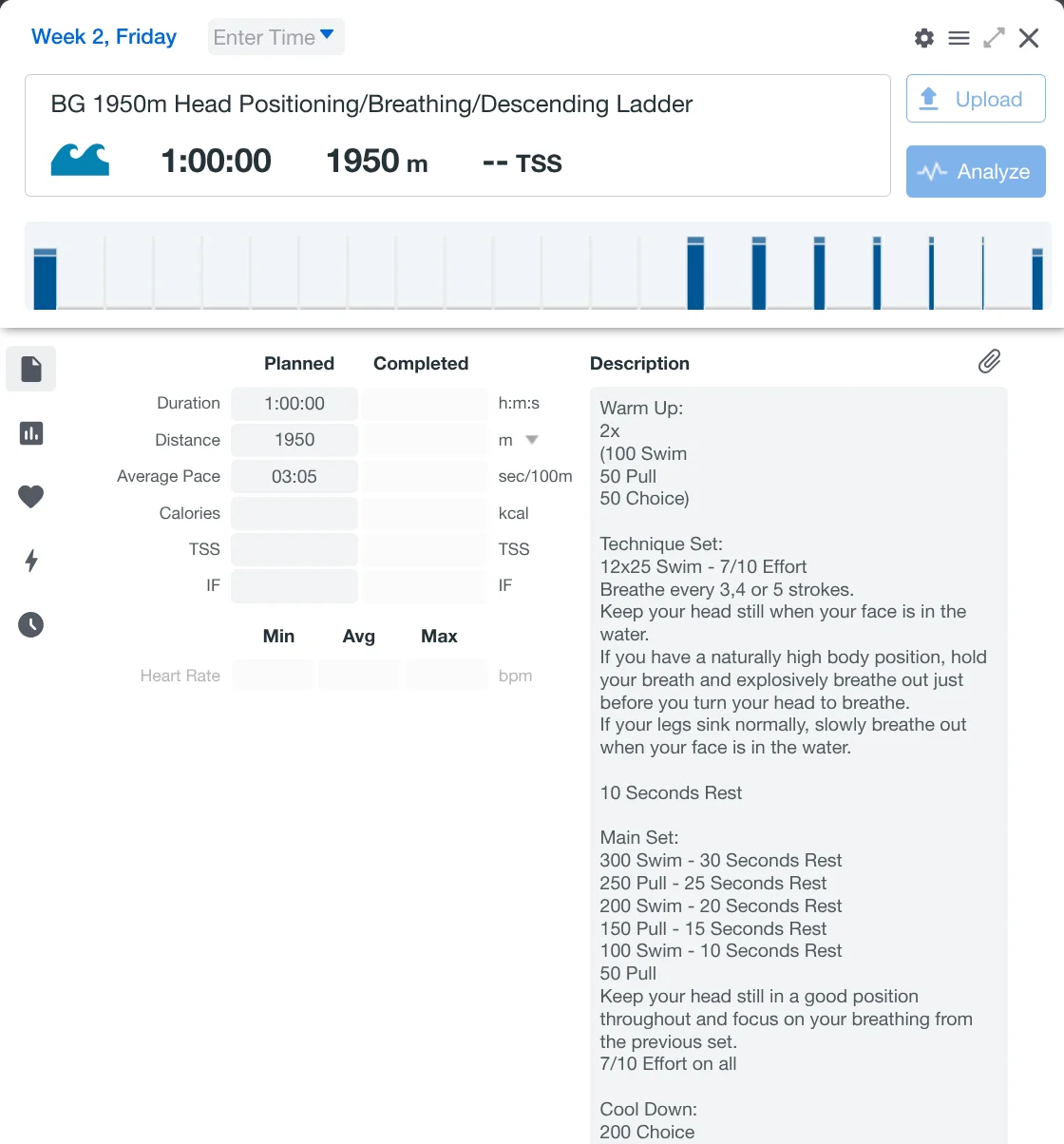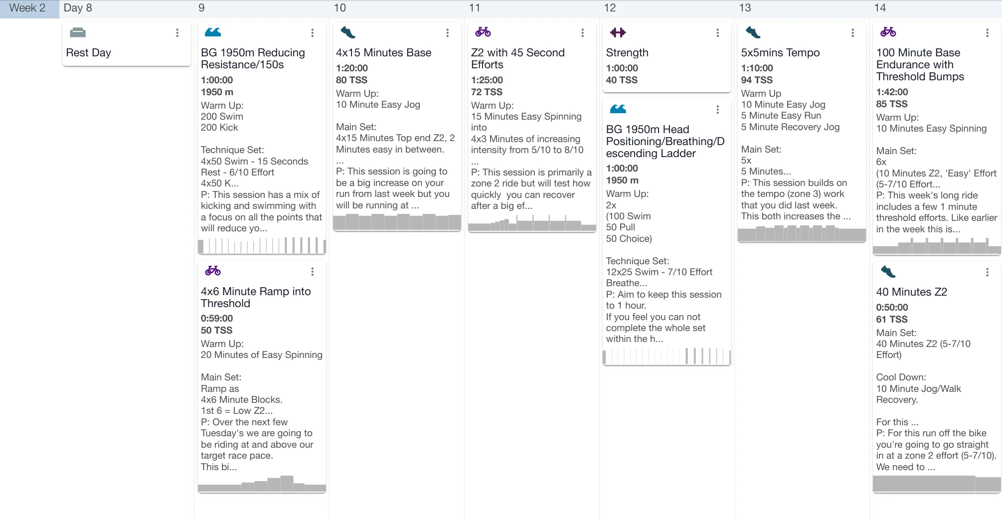 Training sessions are written in an optimal order for improvement, progression and recovery, but plans change and when they do you can move sessions across days and weeks with a premium training peaks account.