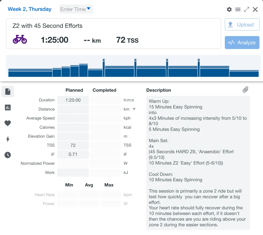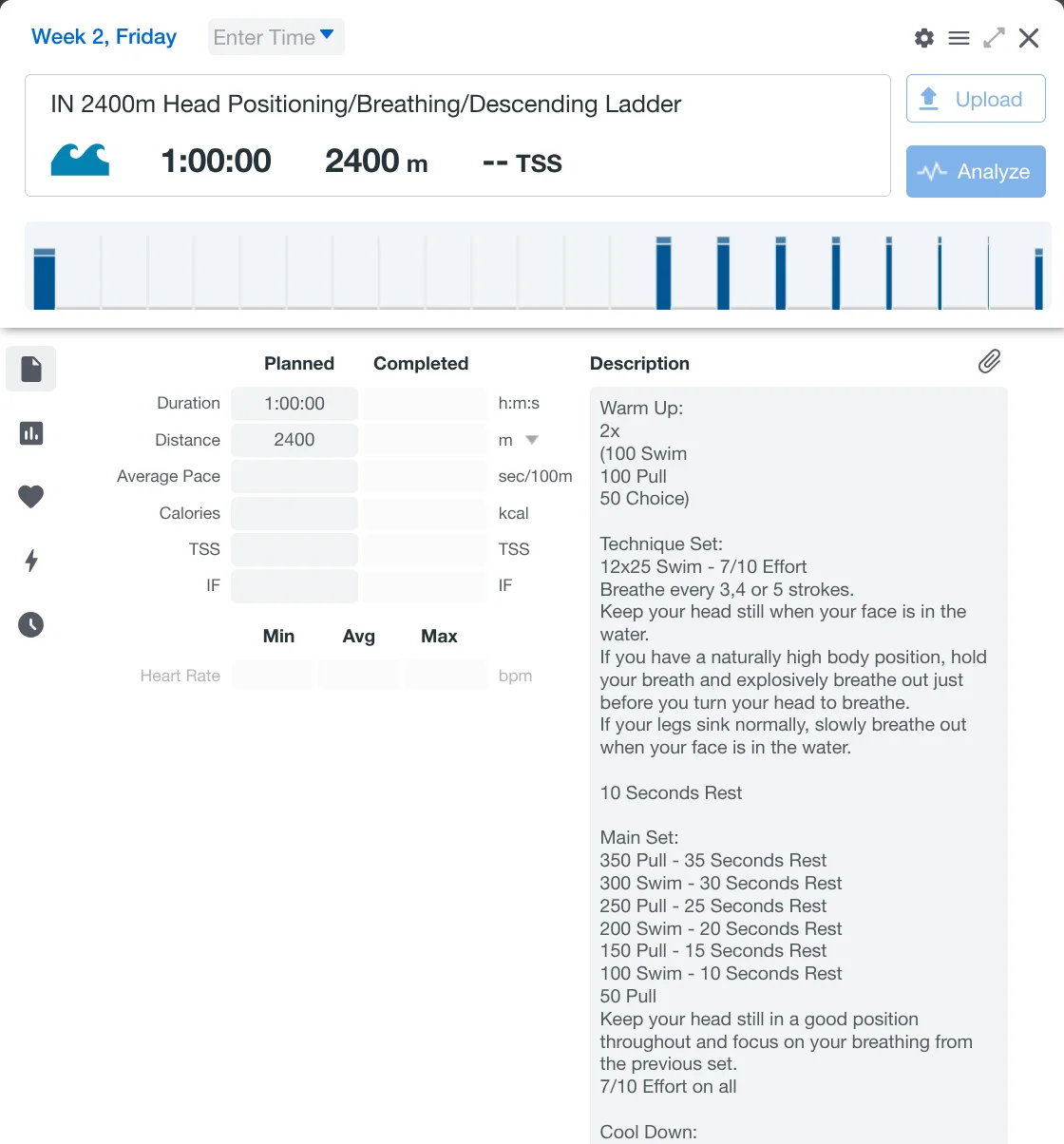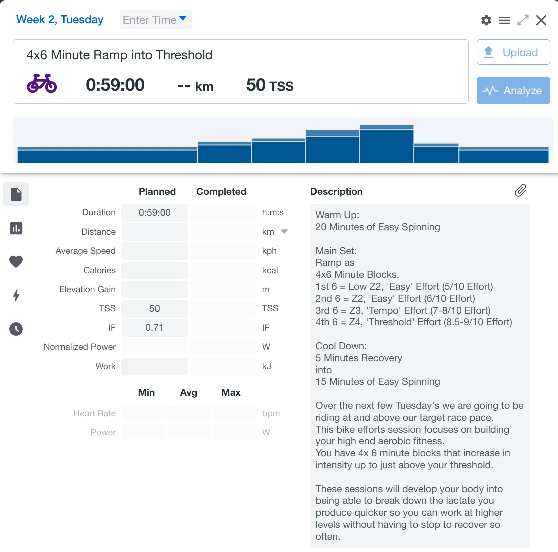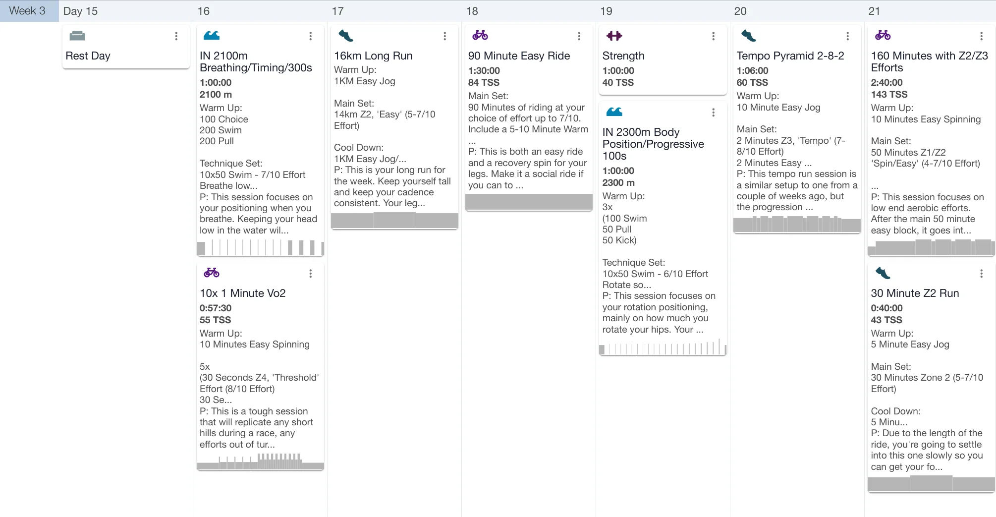 Training sessions are written in an optimal order for improvement, progression and recovery, but plans change and when they do you can move sessions across days and weeks with a premium training peaks account.