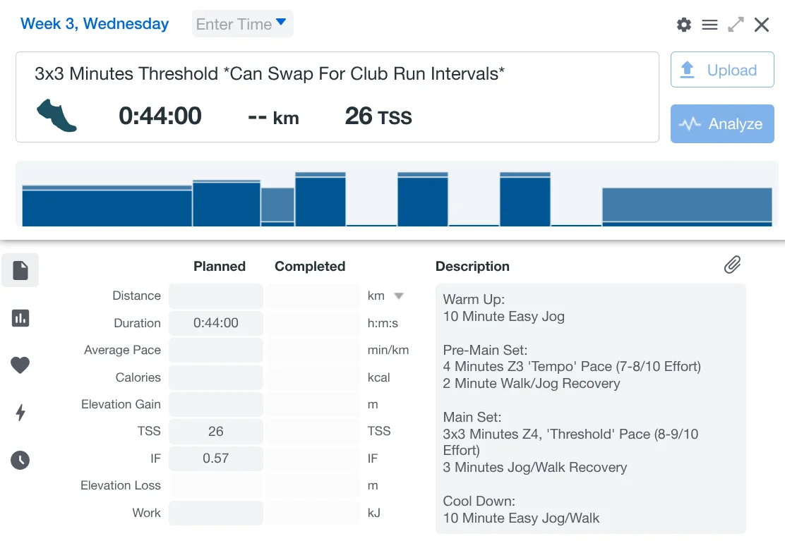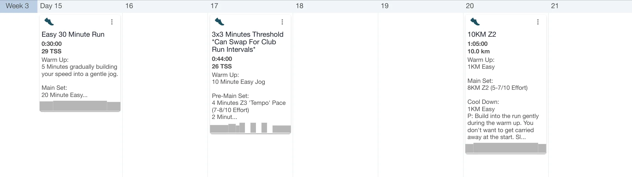 Training sessions are written in an optimal order for improvement, progression and recovery, but plans change and when they do you can move sessions across days and weeks with a premium training peaks account.