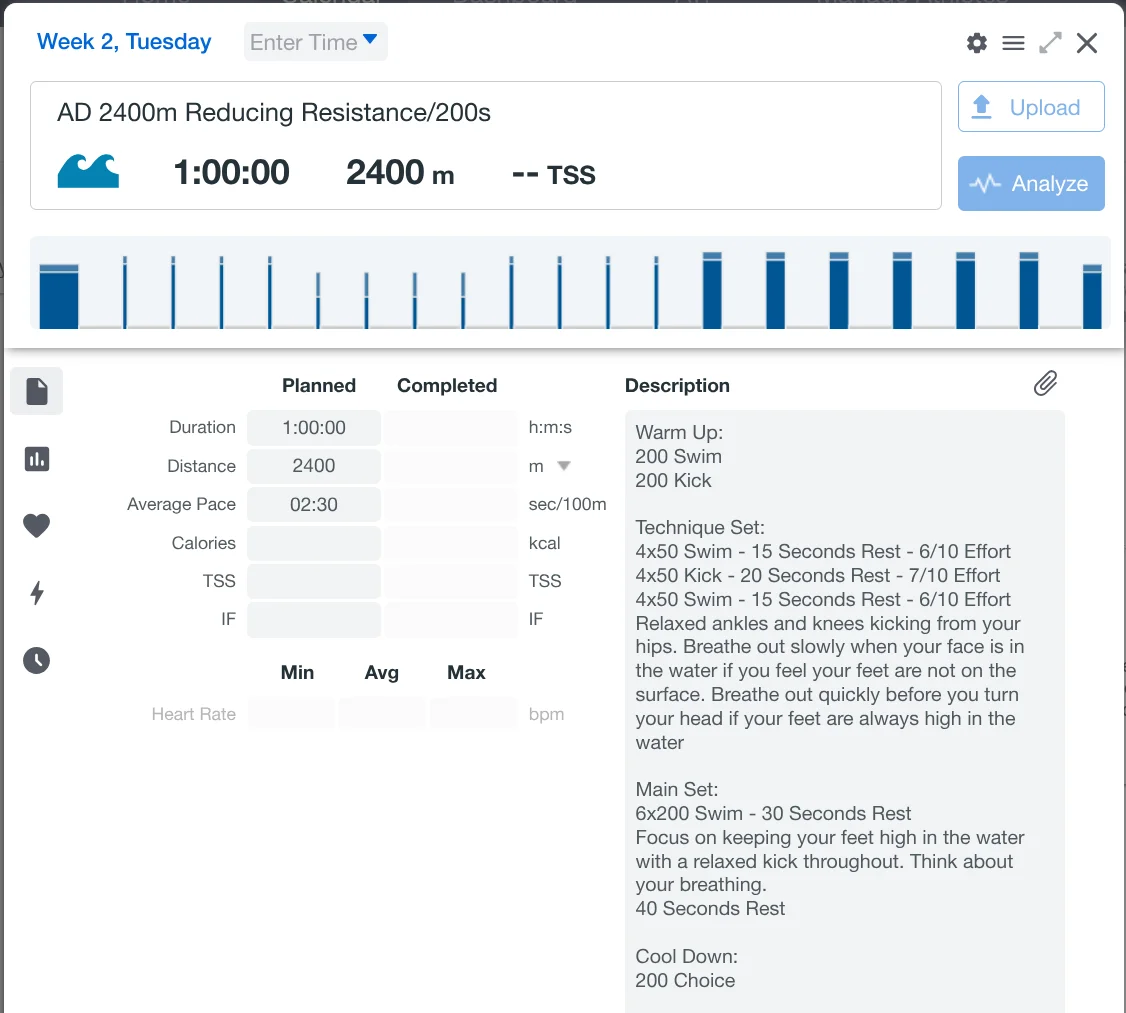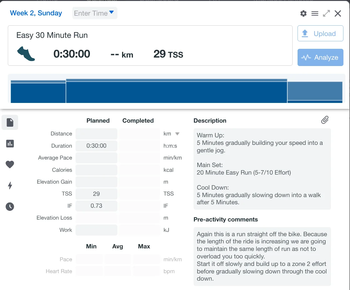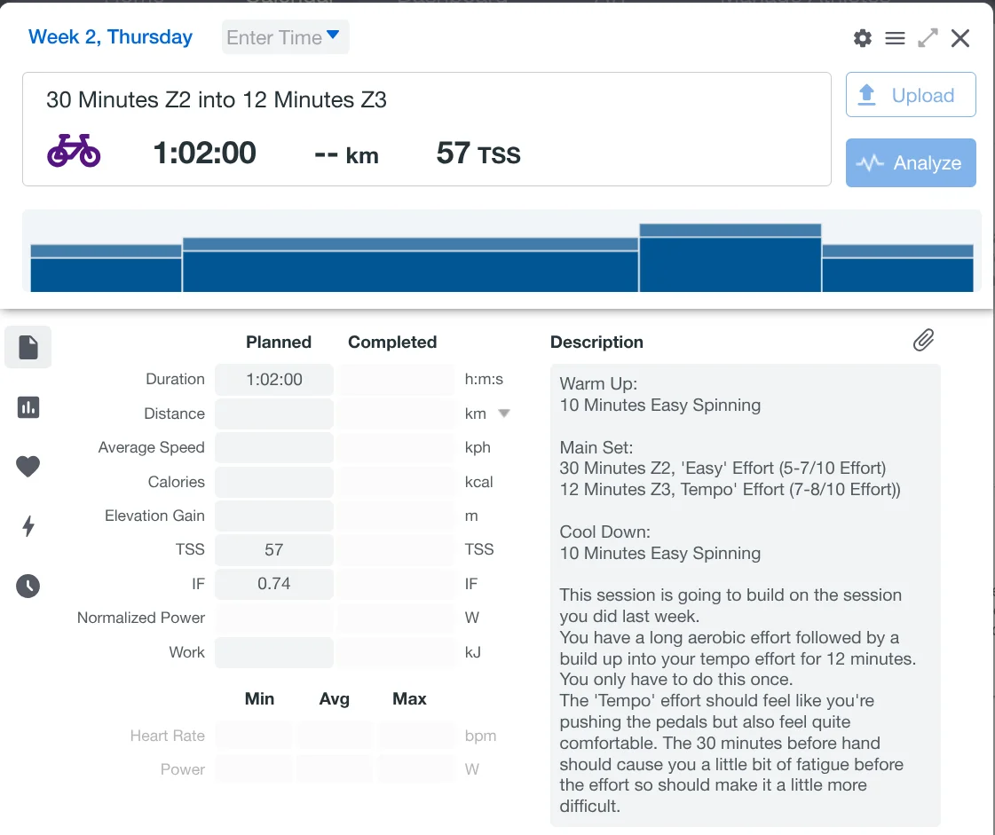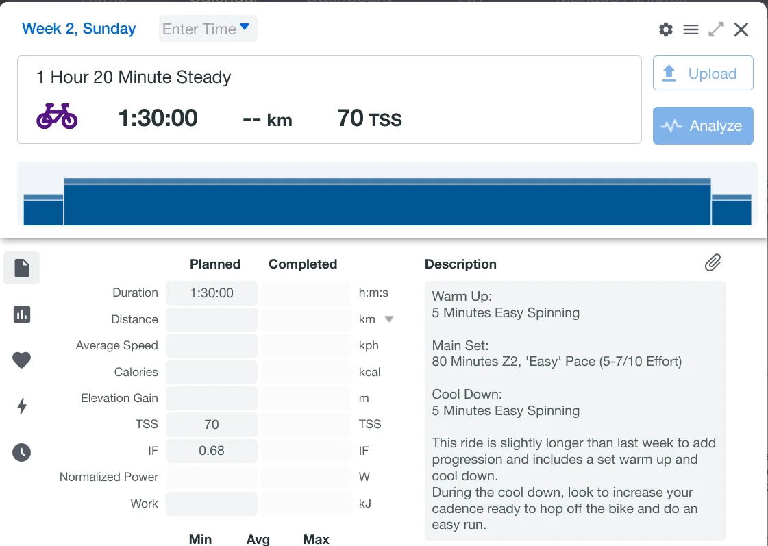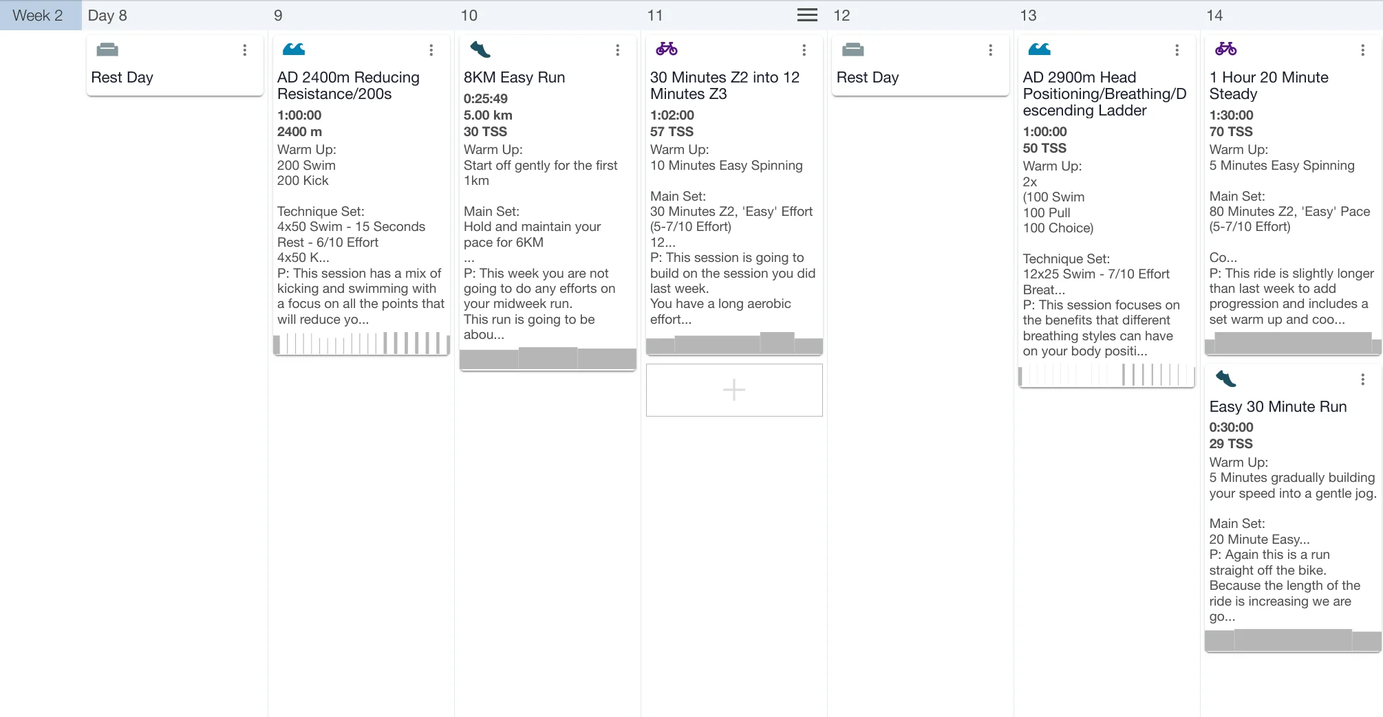 Training sessions are written in an optimal order for improvement, progression and recovery, but plans change and when they do you can move sessions across days and weeks with a premium training peaks account.