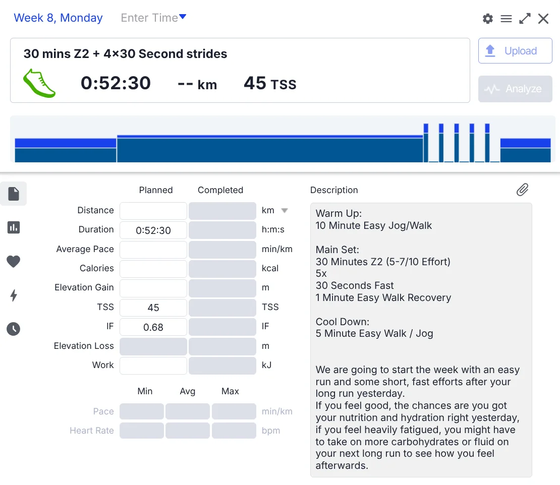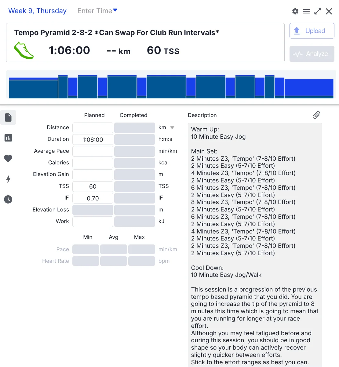 Training sessions are written in an optimal order for improvement, progression and recovery, but plans change and when they do you can move sessions across days and weeks with a premium training peaks account.