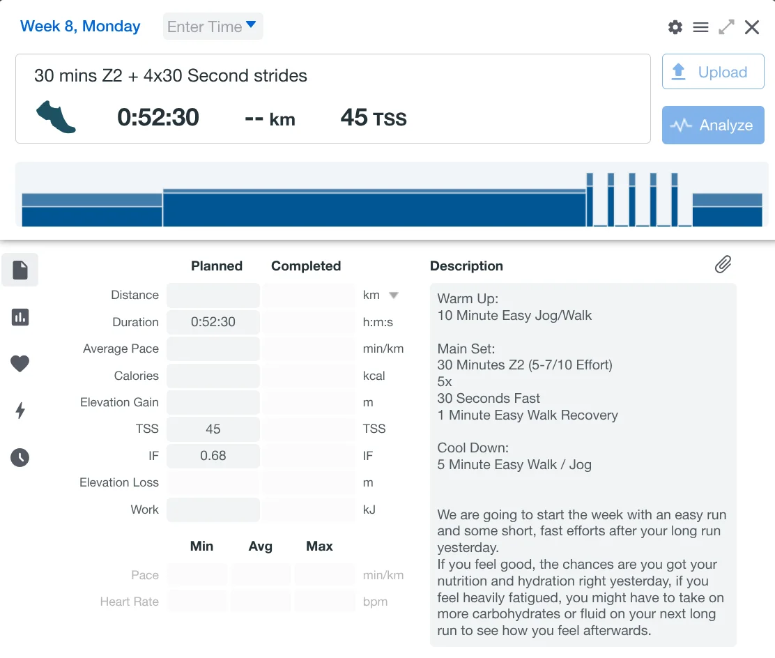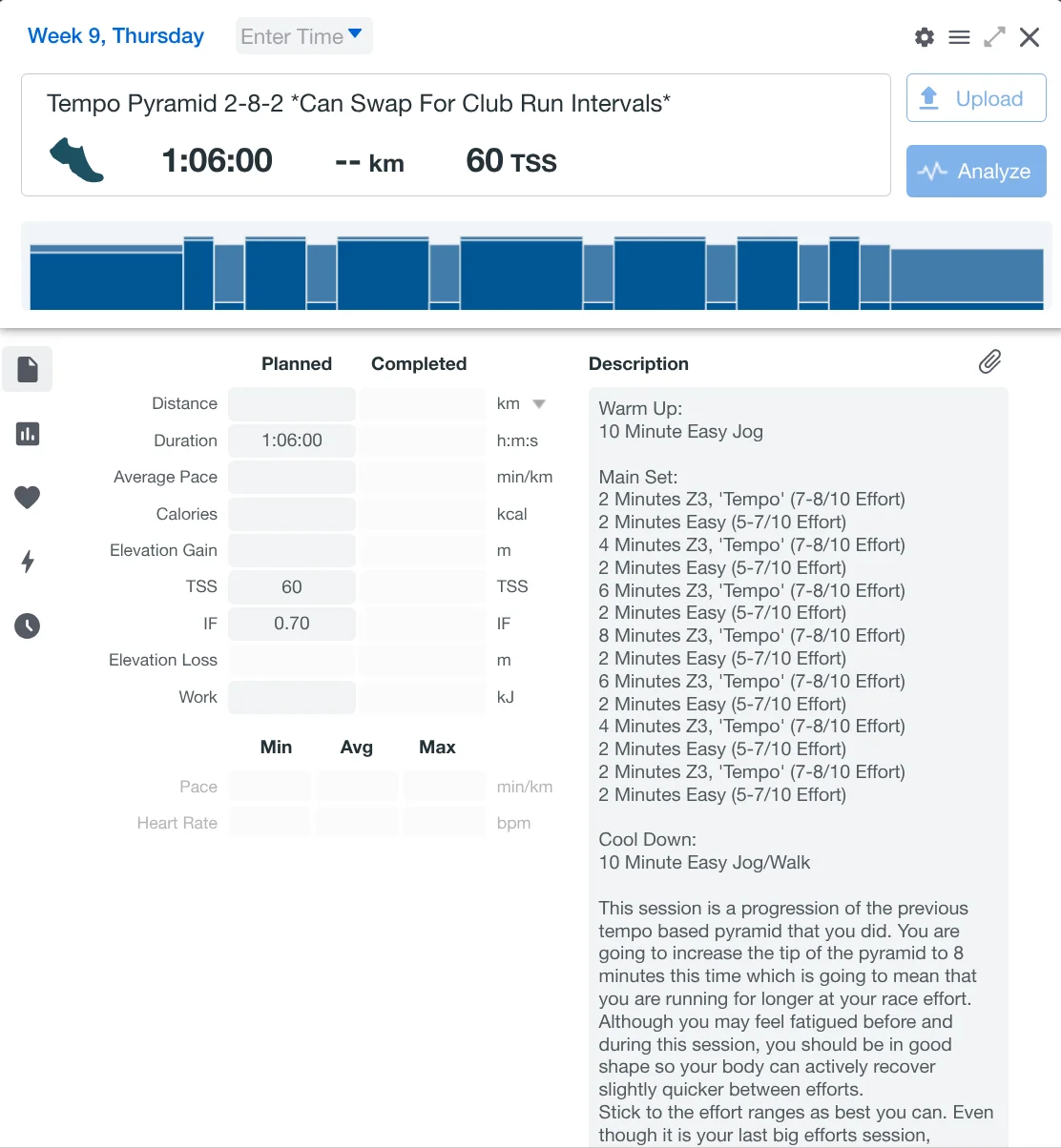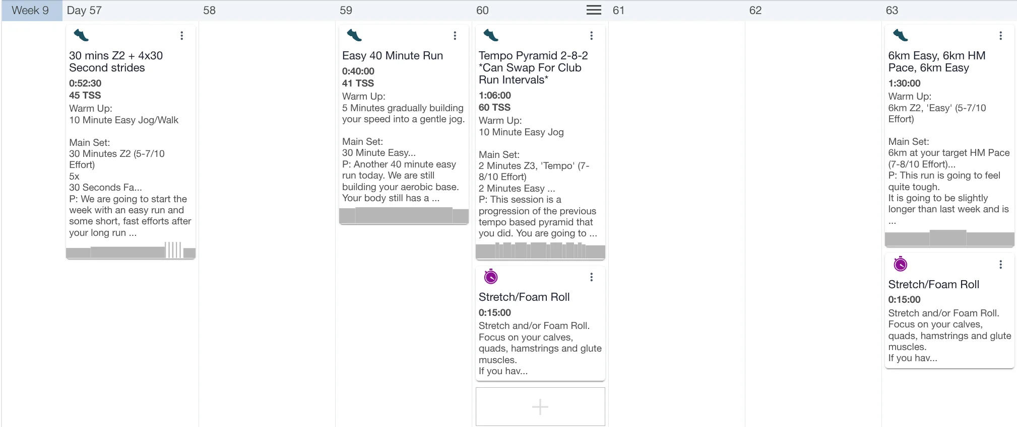 Training sessions are written in an optimal order for improvement, progression and recovery, but plans change and when they do you can move sessions across days and weeks with a premium training peaks account.