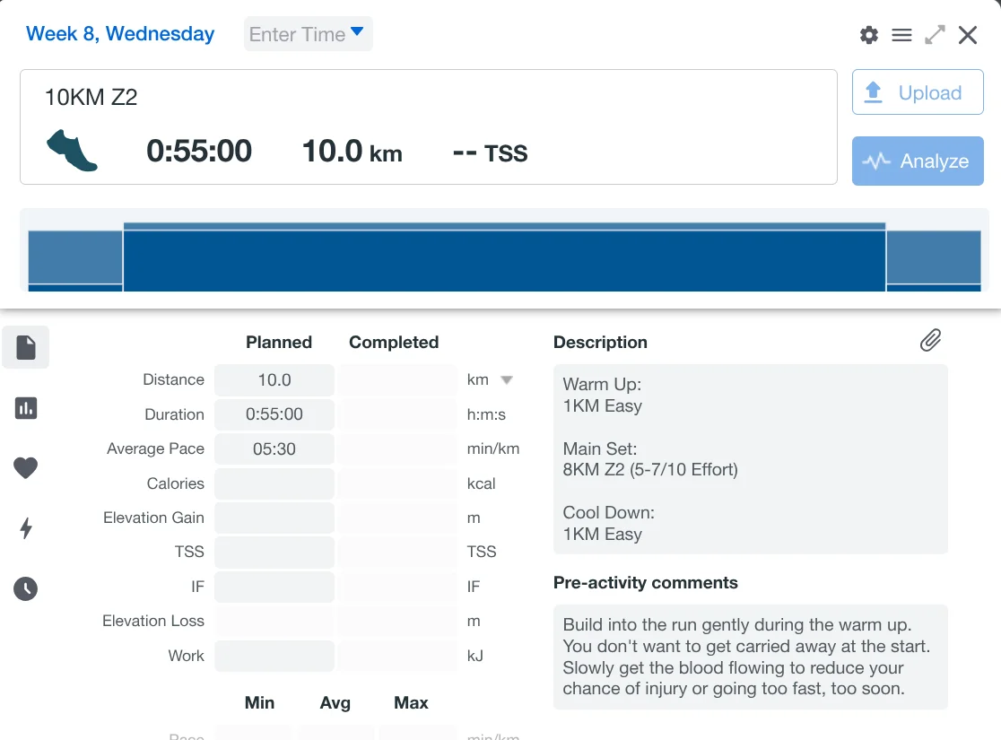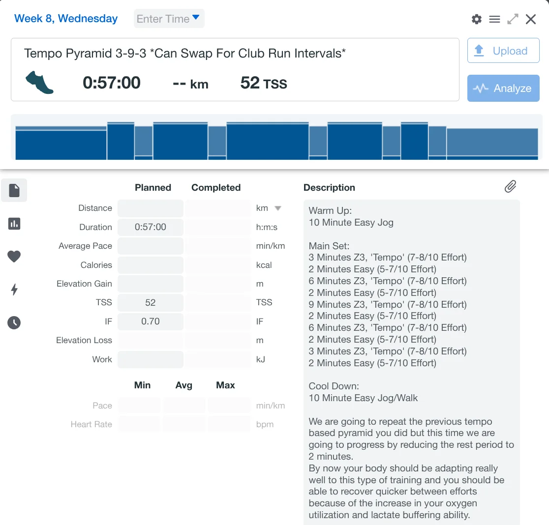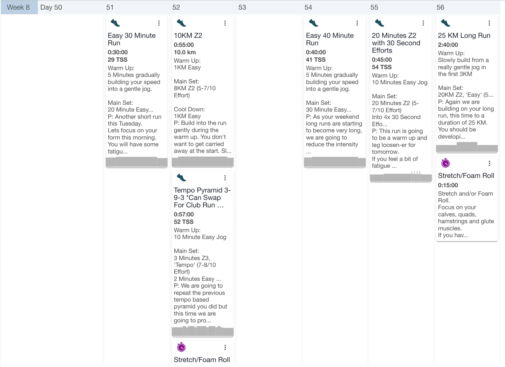Training sessions are written in an optimal order for improvement, progression and recovery, but plans change and when they do you can move sessions across days and weeks with a premium training peaks account.