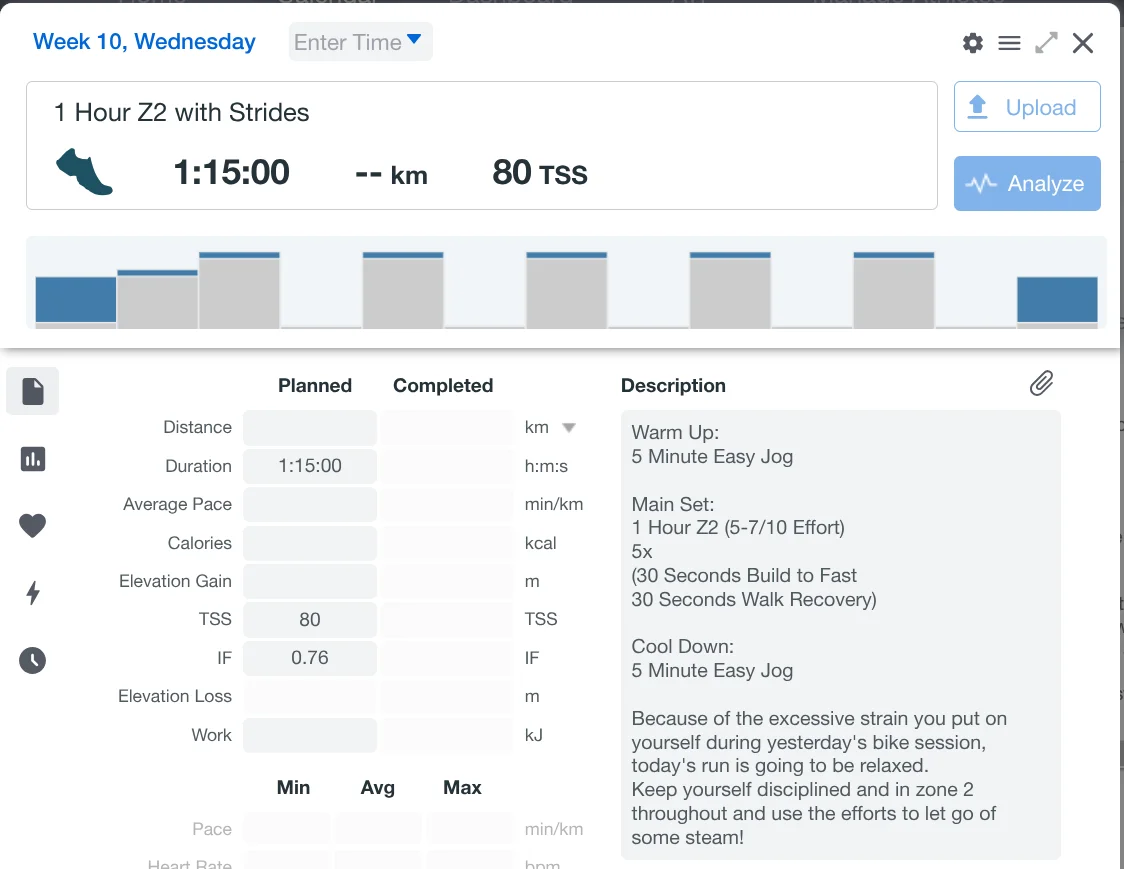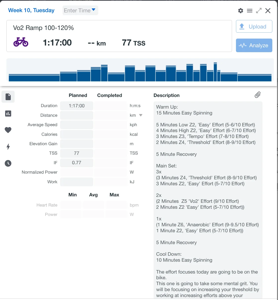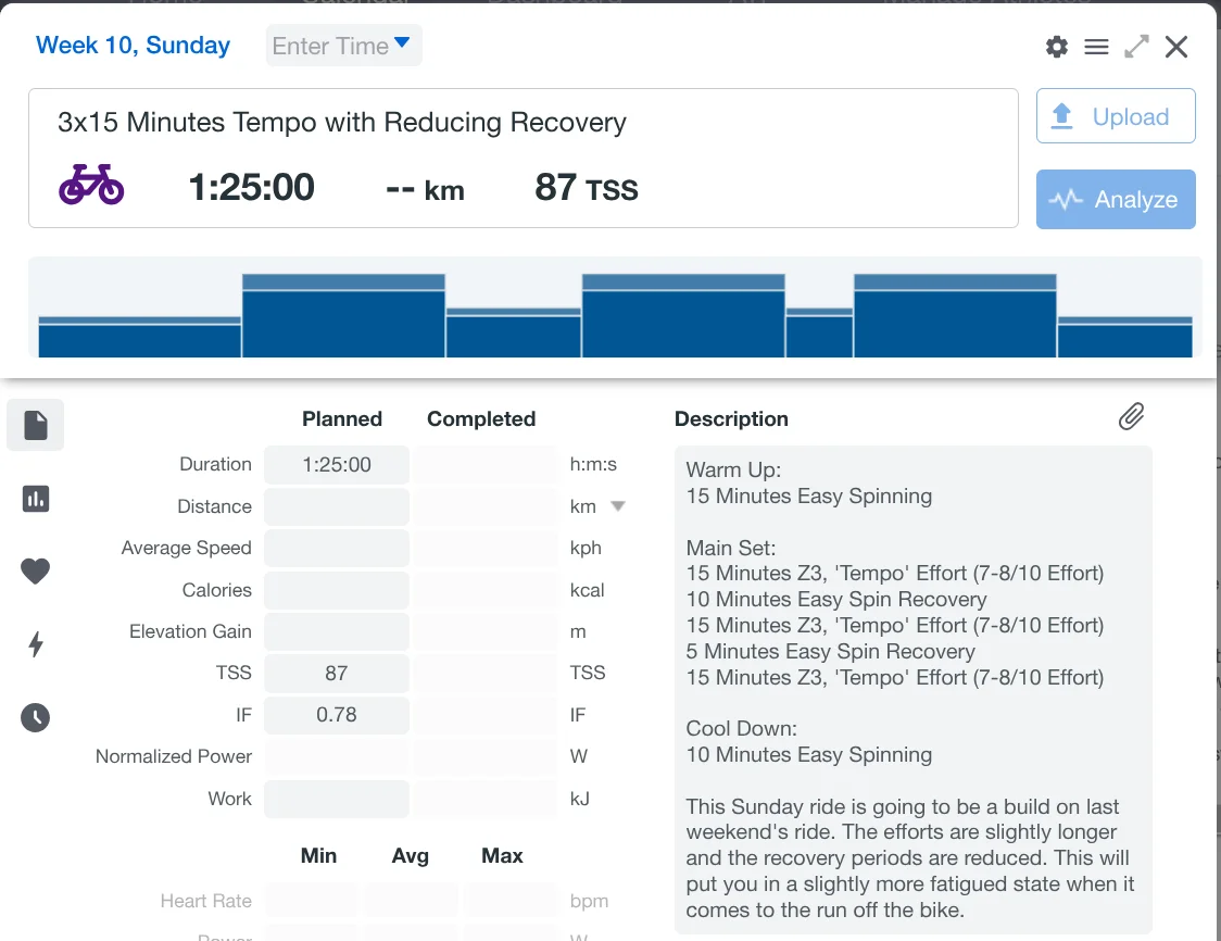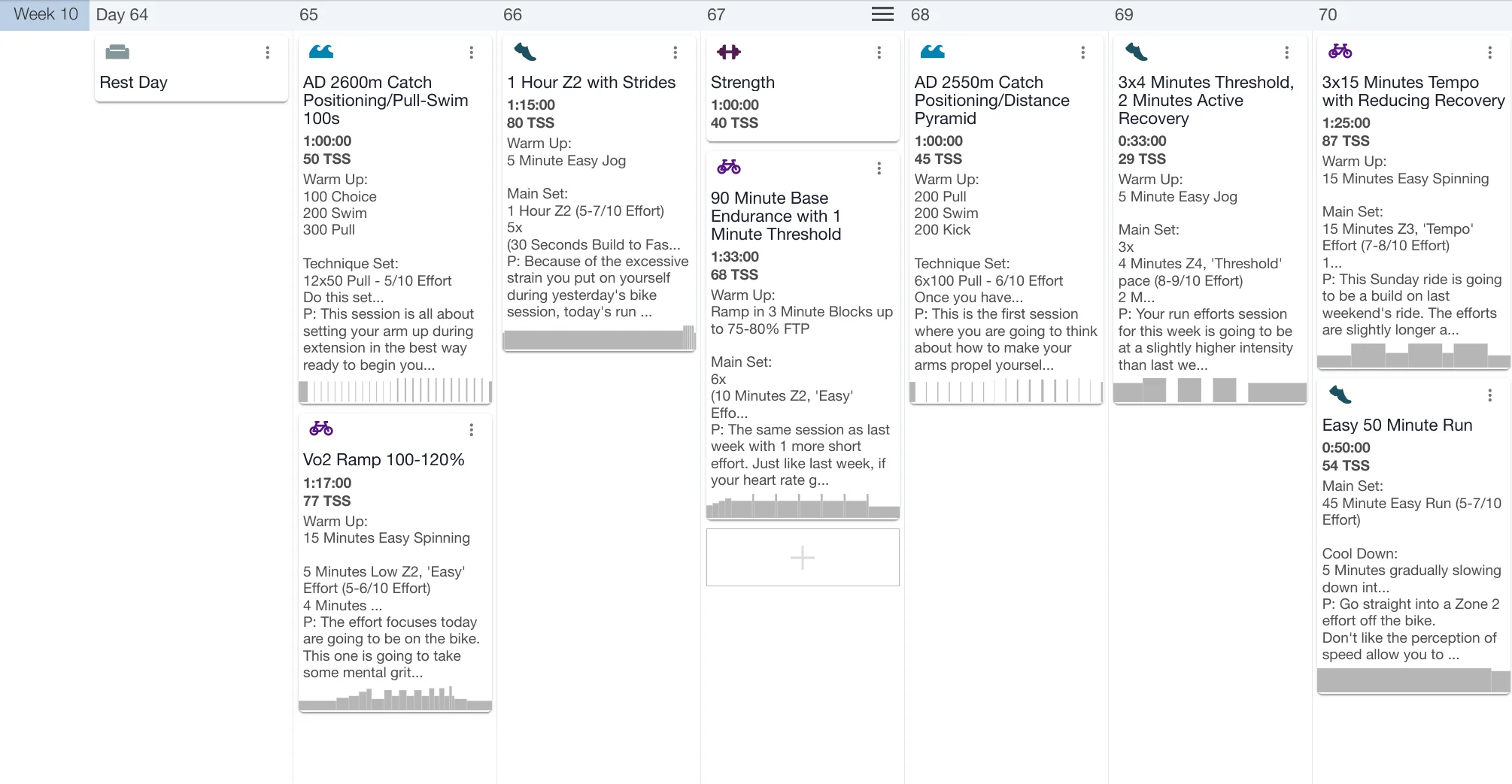Training sessions are written in an optimal order for improvement, progression and recovery, but plans change and when they do you can move sessions across days and weeks with a premium training peaks account.