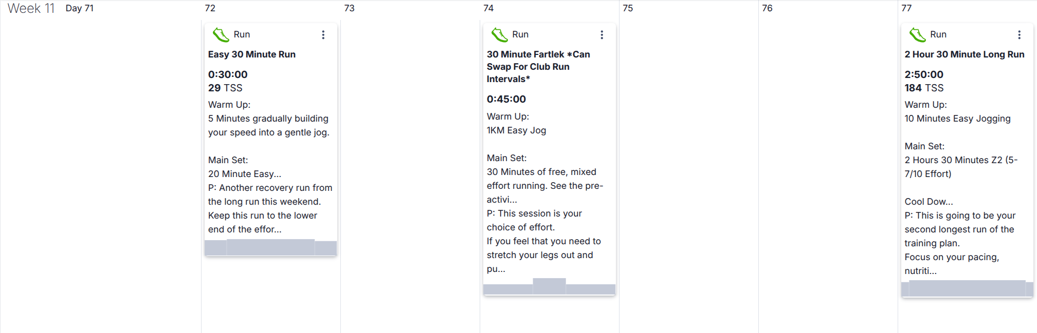 Training sessions are written in an optimal order for improvement, progression and recovery, but plans change and when they do you can move sessions across days and weeks with a premium training peaks account.