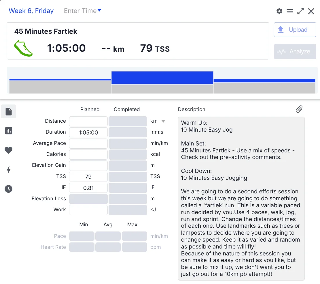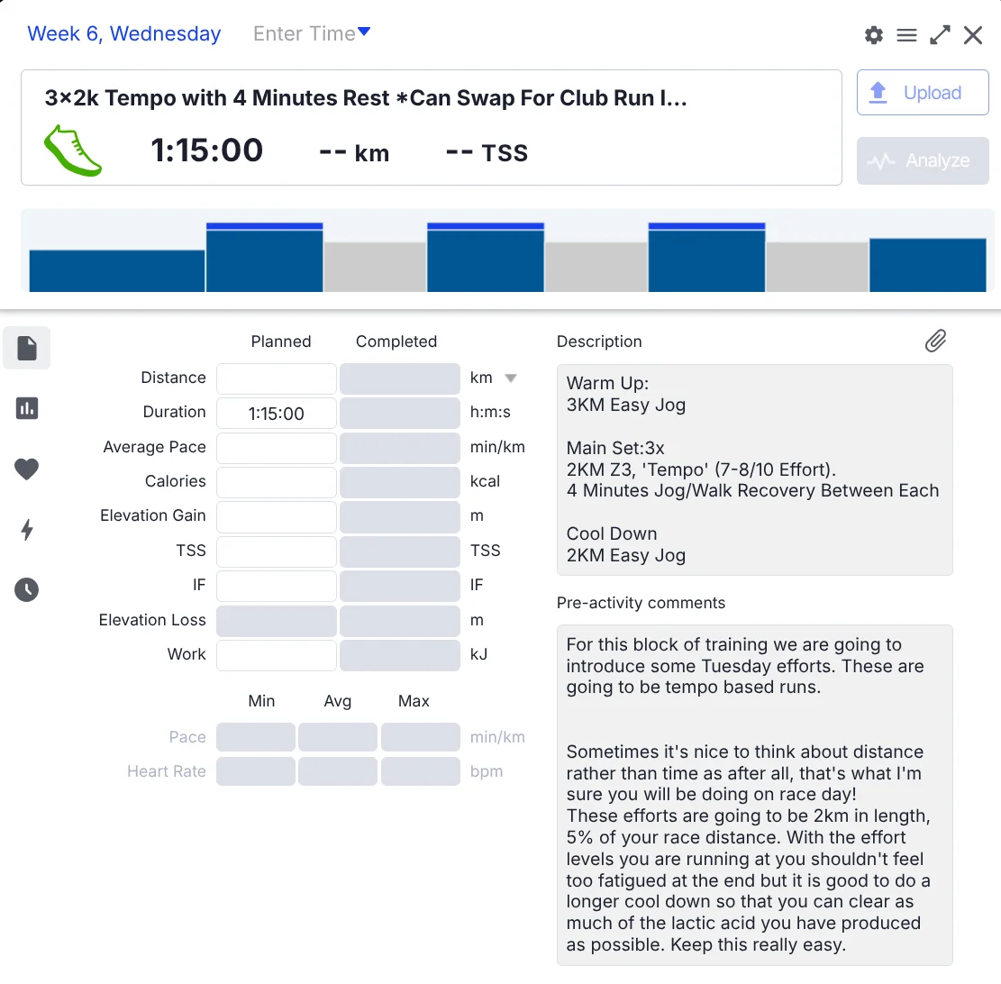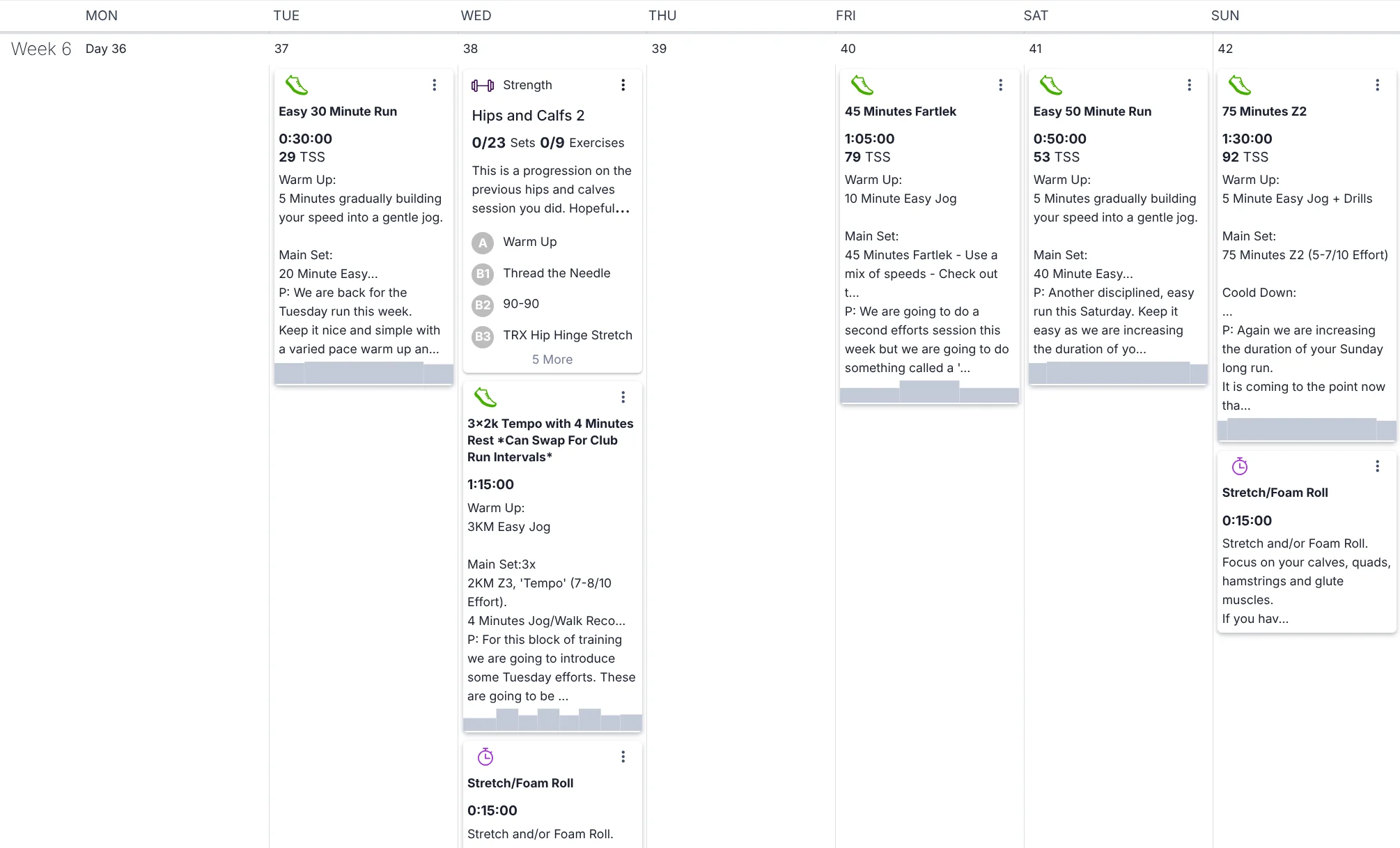 Training sessions are written in an optimal order for improvement, progression and recovery, but plans change and when they do you can move sessions across days and weeks with a premium training peaks account.