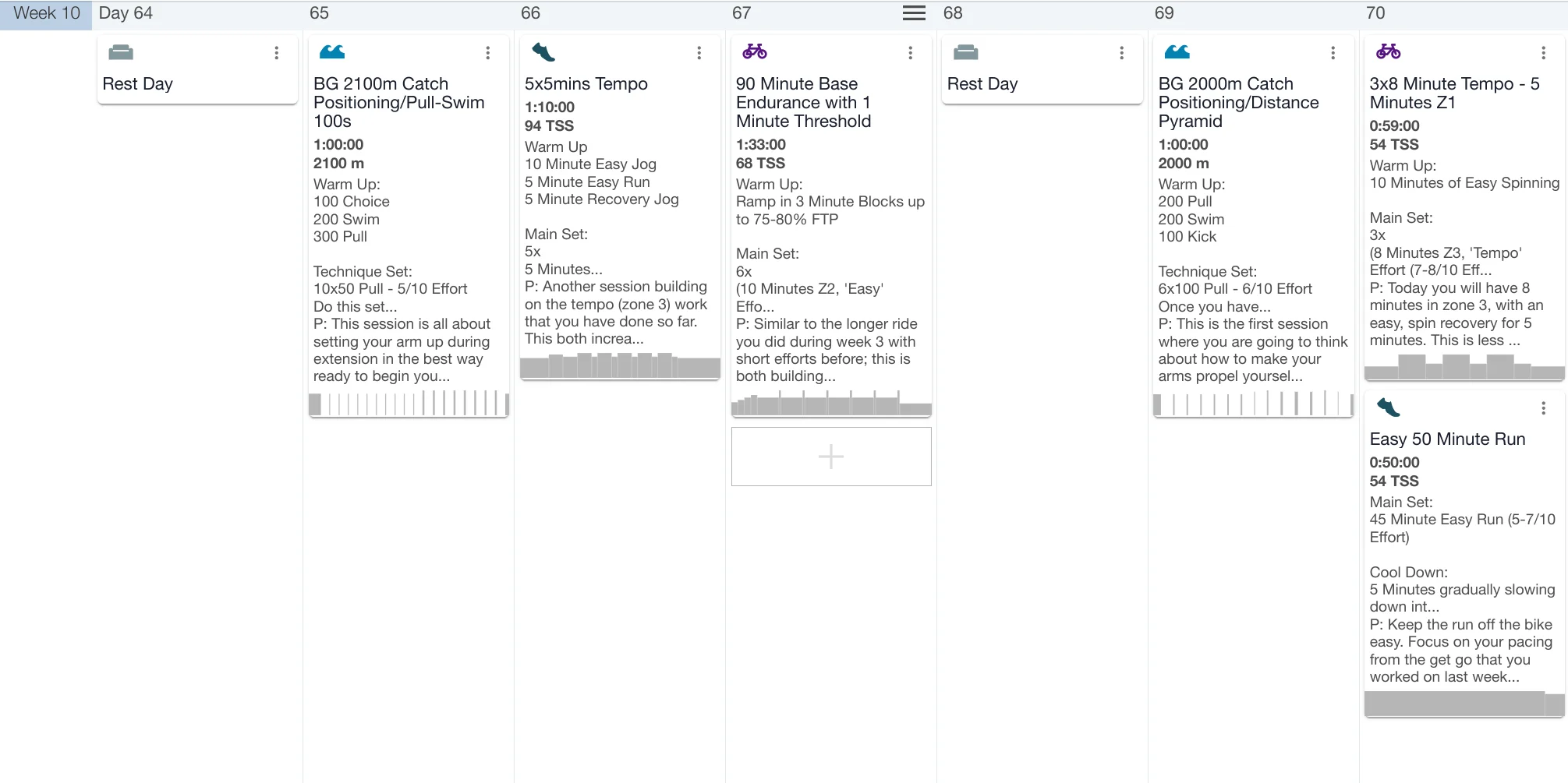 Training sessions are written in an optimal order for improvement, progression and recovery, but plans change and when they do you can move sessions across days and weeks with a premium training peaks account.