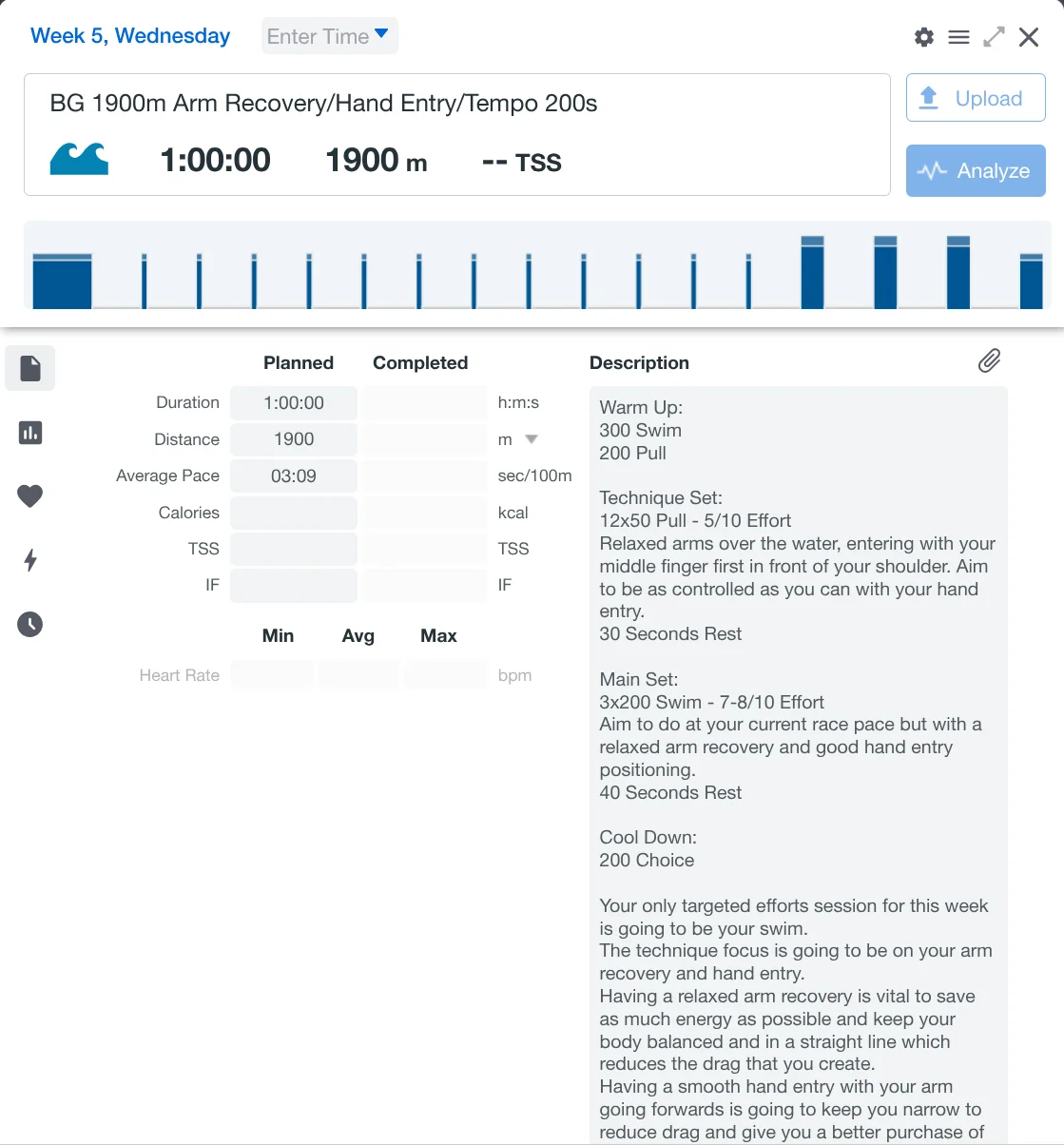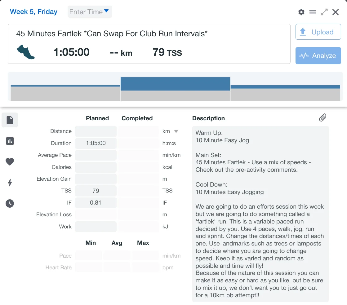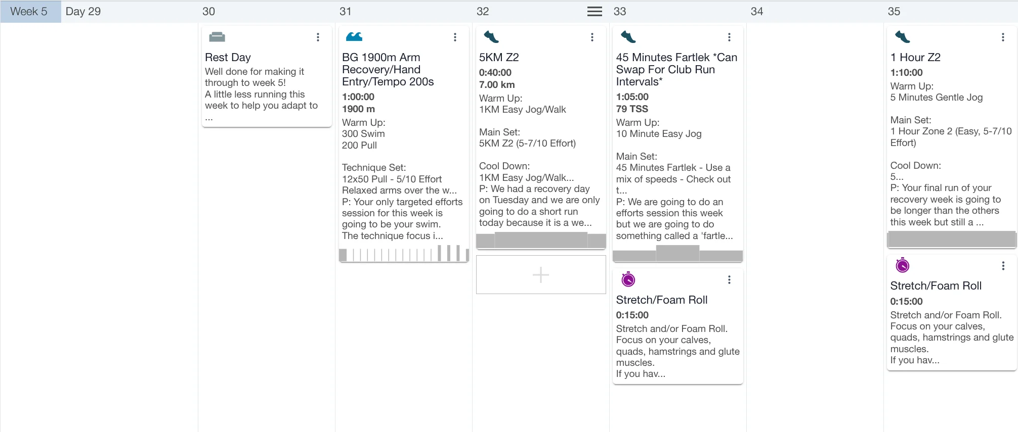 Training sessions are written in an optimal order for improvement, progression and recovery, but plans change and when they do you can move sessions across days and weeks with a premium training peaks account.