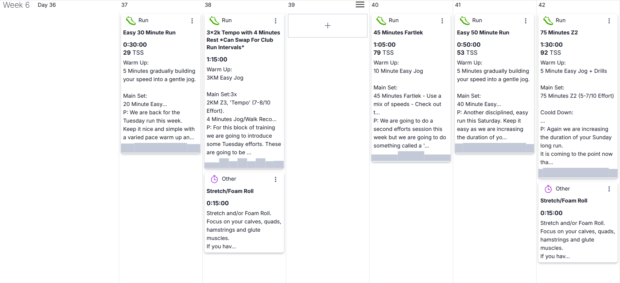Training sessions are written in an optimal order for improvement, progression and recovery, but plans change and when they do you can move sessions across days and weeks with a premium training peaks account.