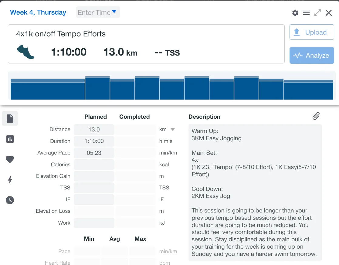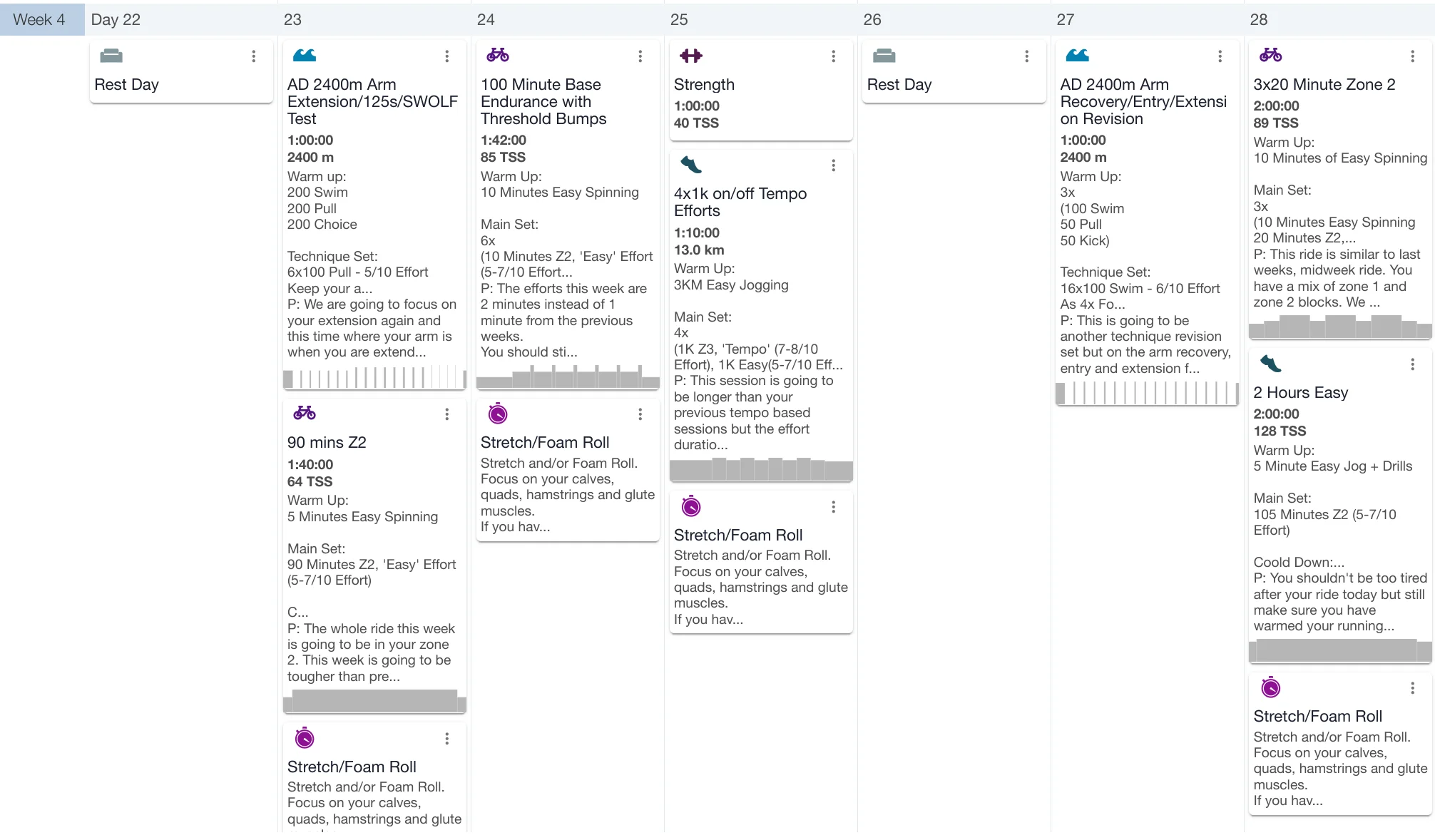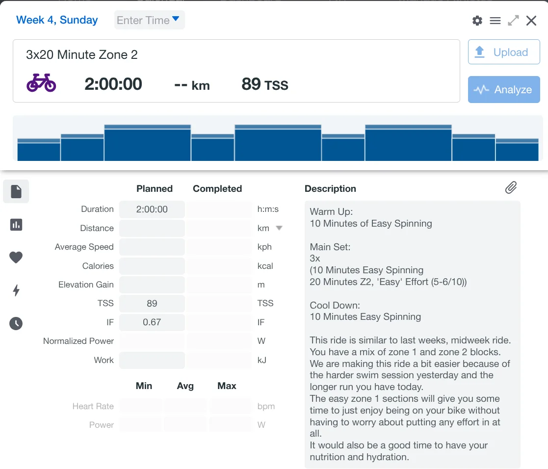 Training sessions are written in an optimal order for improvement, progression and recovery, but plans change and when they do you can move sessions across days and weeks with a premium training peaks account.