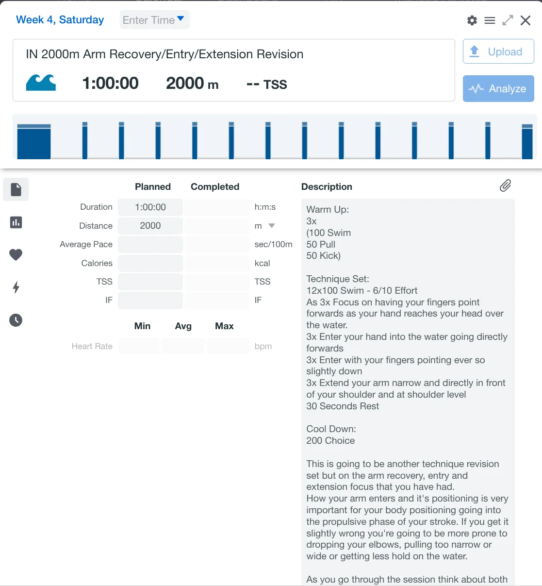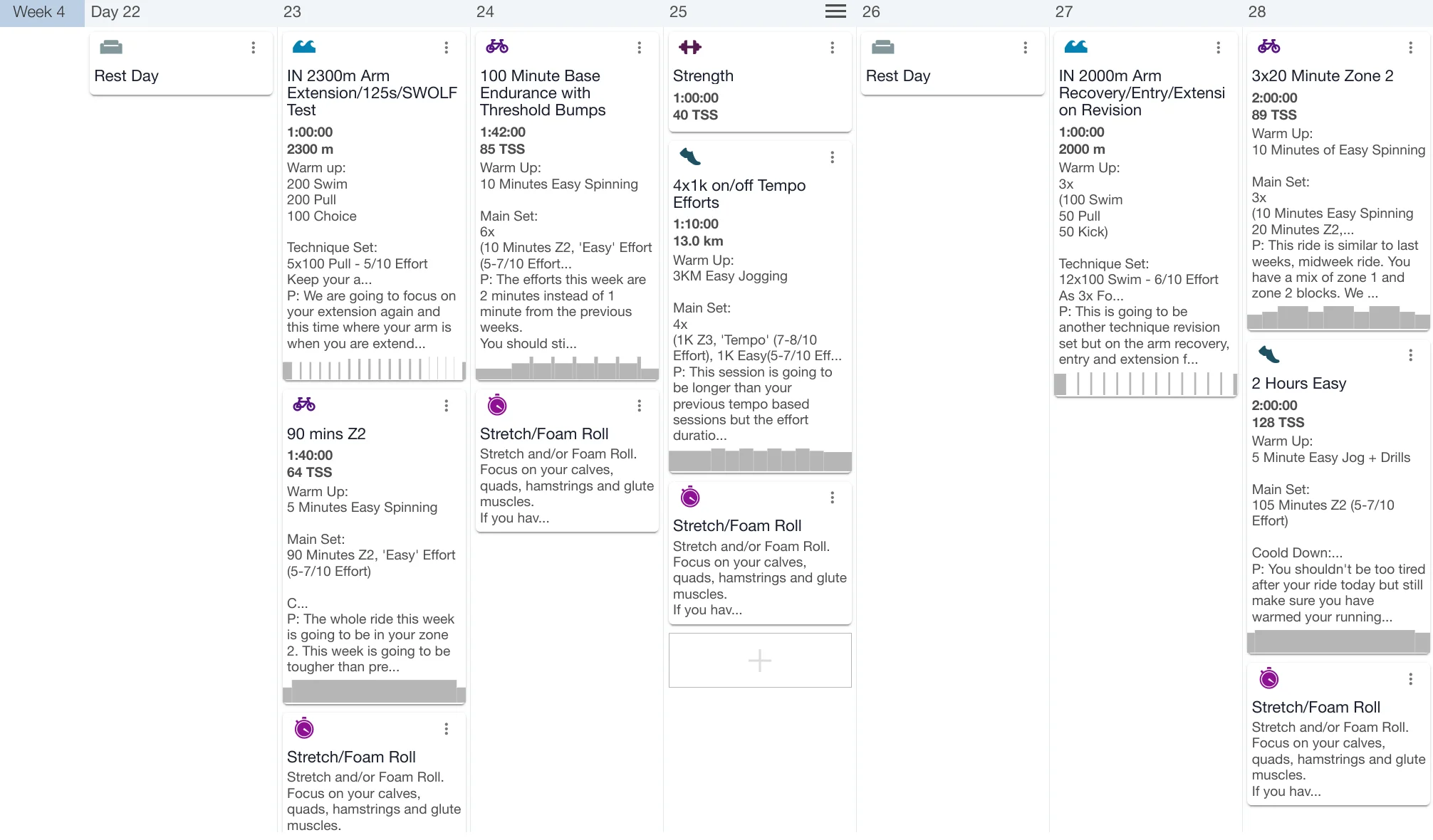 Training sessions are written in an optimal order for improvement, progression and recovery, but plans change and when they do you can move sessions across days and weeks with a premium training peaks account.
