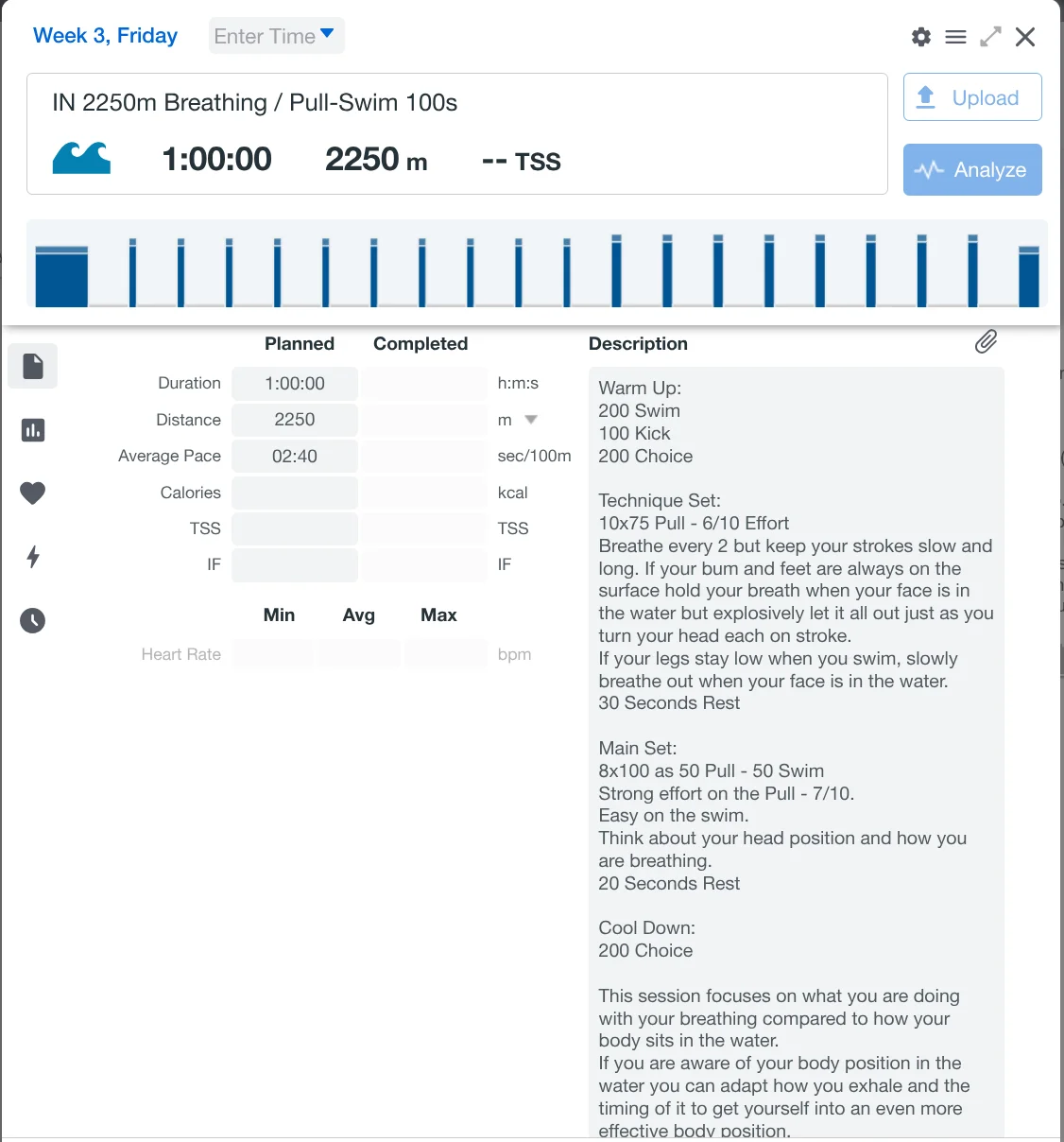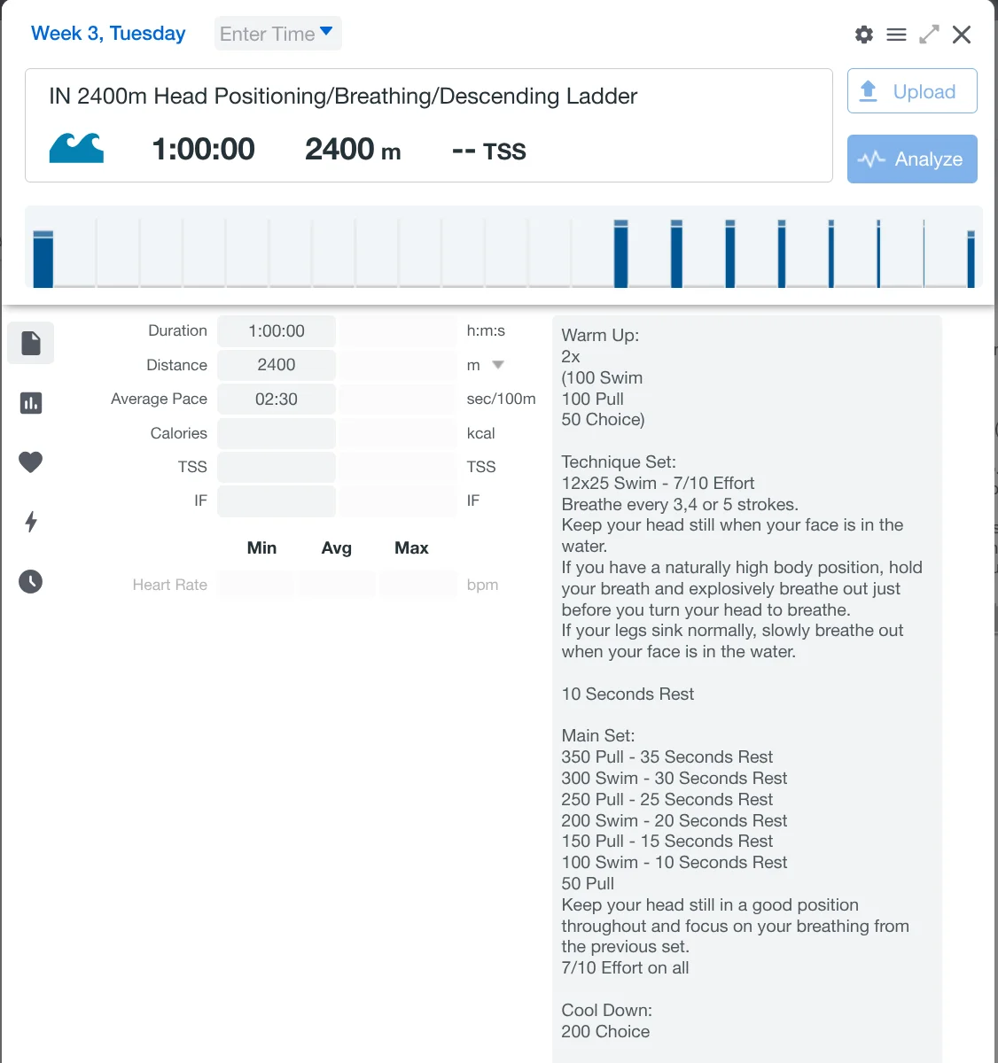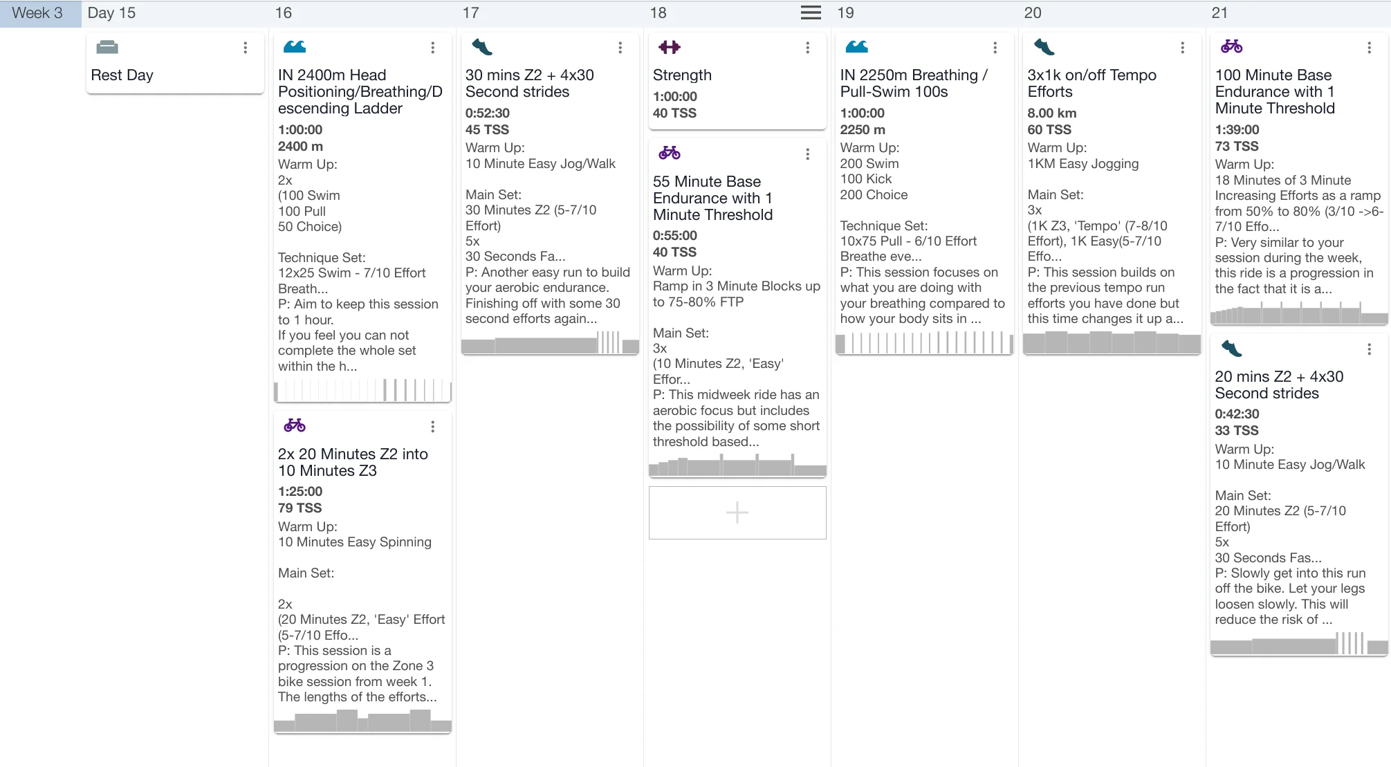 Training sessions are written in an optimal order for improvement, progression and recovery, but plans change and when they do you can move sessions across days and weeks with a premium training peaks account.