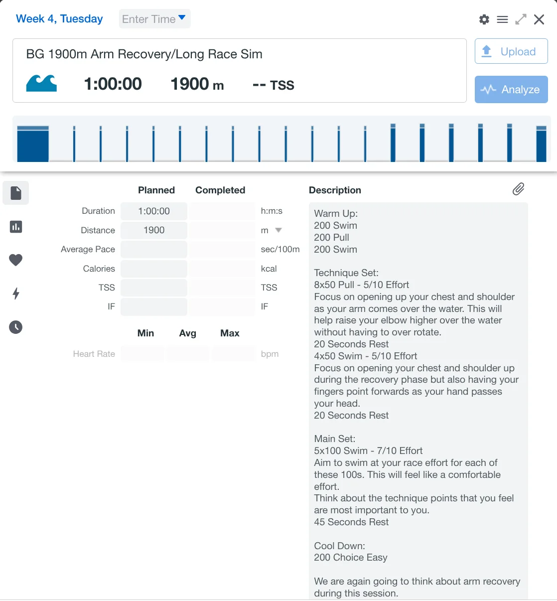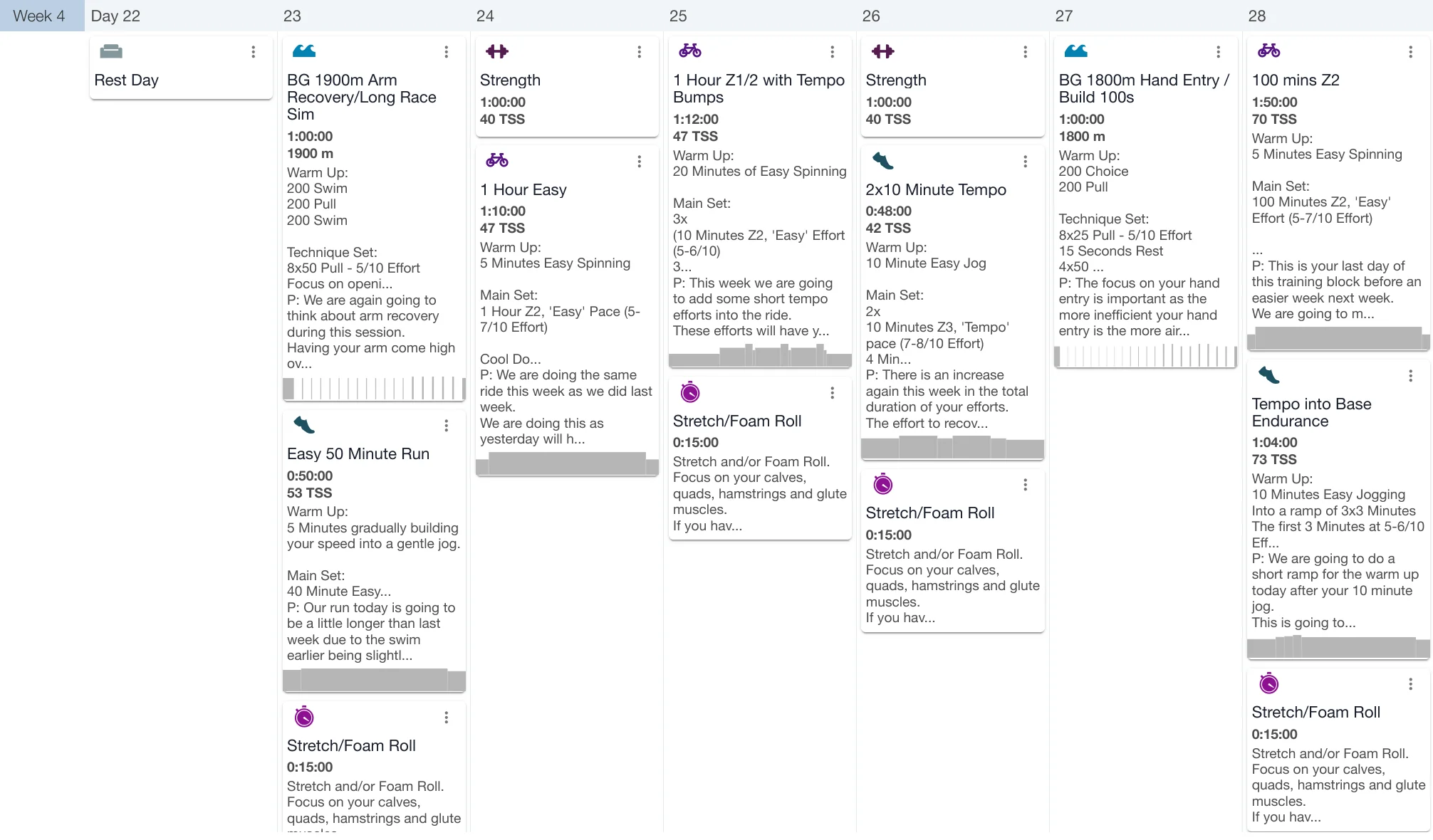 Training sessions are written in an optimal order for improvement, progression and recovery, but plans change and when they do you can move sessions across days and weeks with a premium training peaks account.