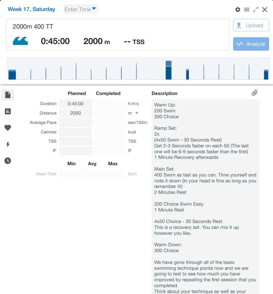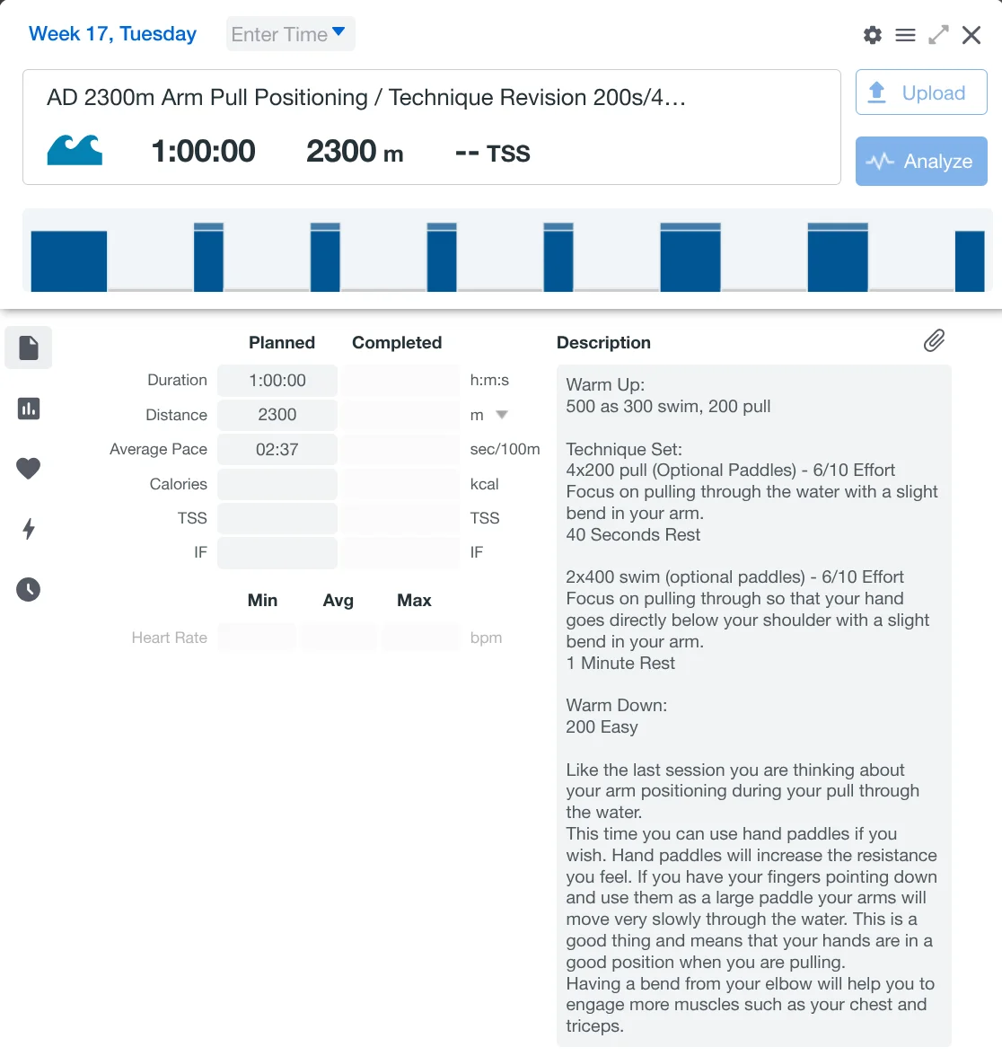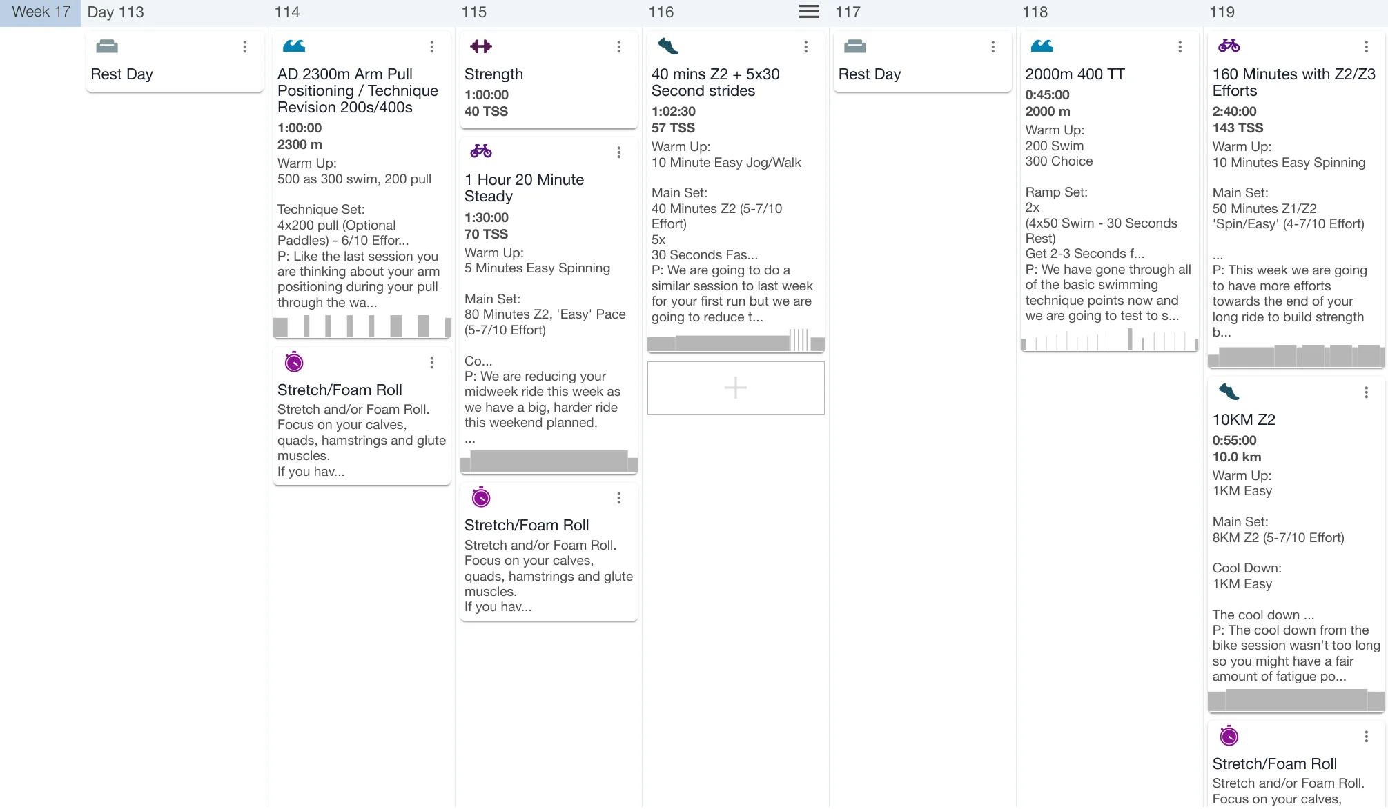 Training sessions are written in an optimal order for improvement, progression and recovery, but plans change and when they do you can move sessions across days and weeks with a premium training peaks account.