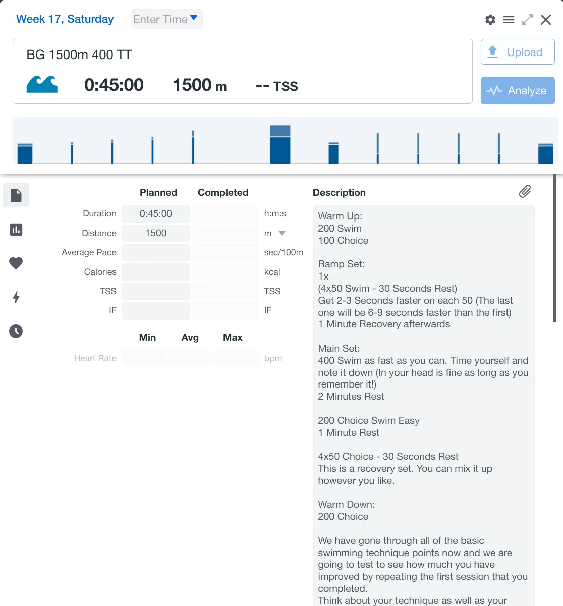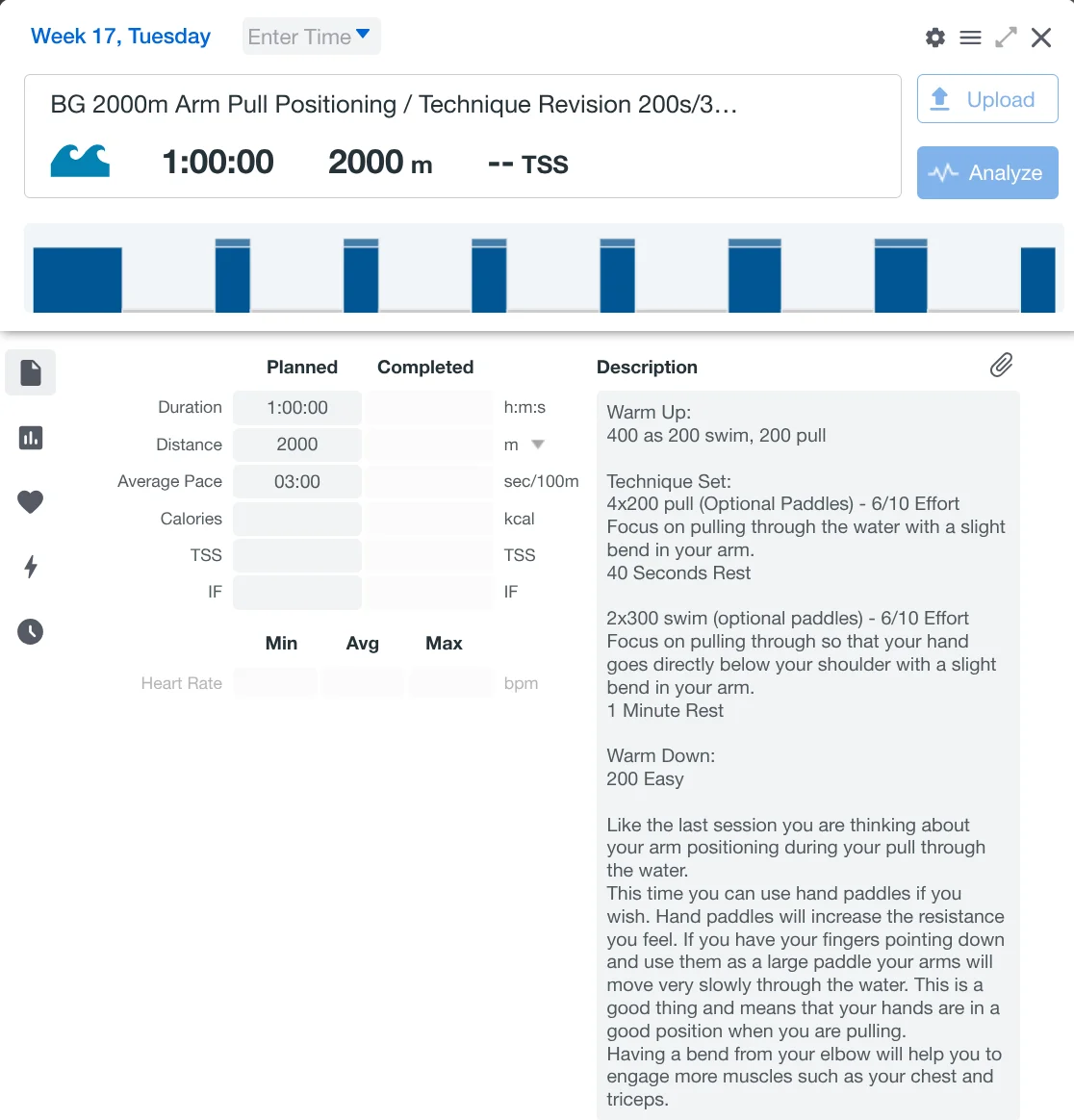 Training sessions are written in an optimal order for improvement, progression and recovery, but plans change and when they do you can move sessions across days and weeks with a premium training peaks account.