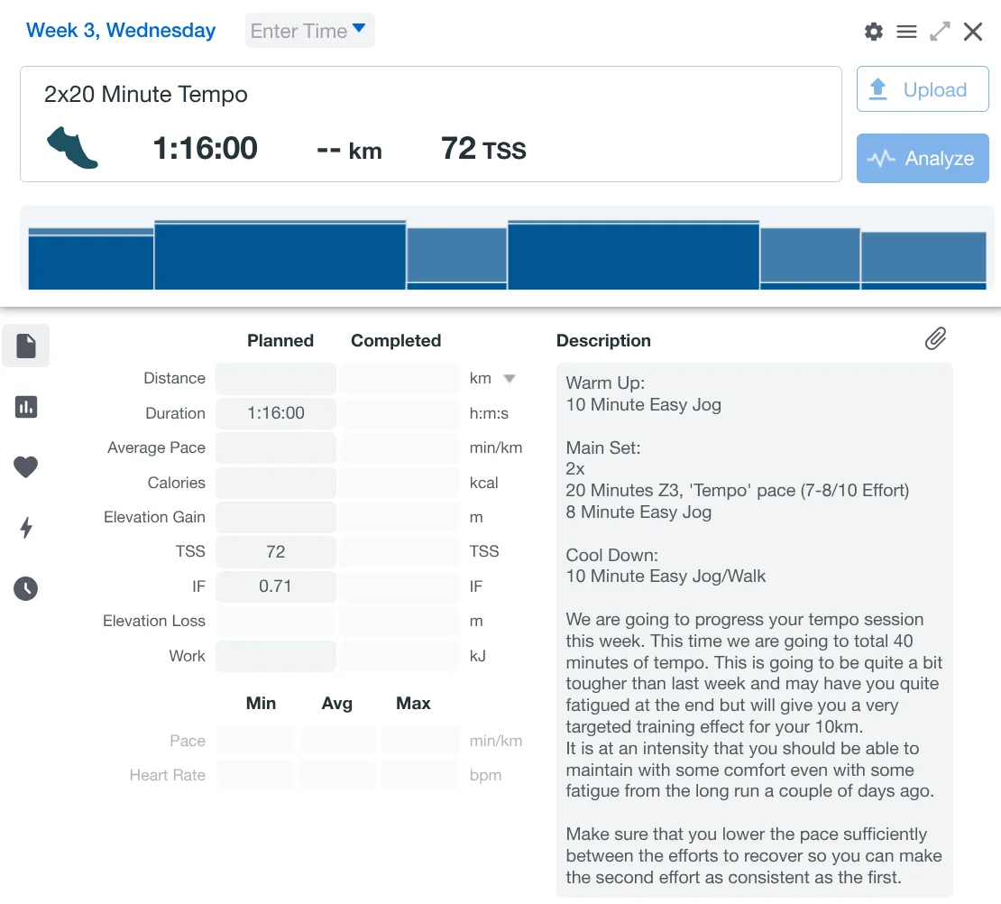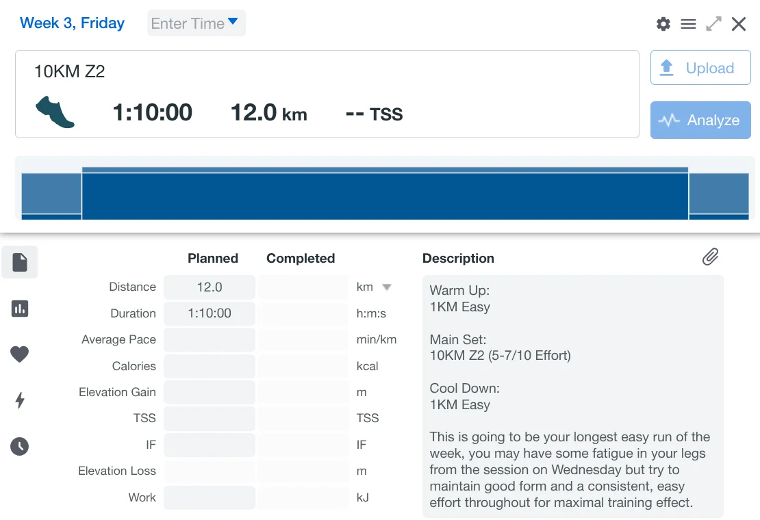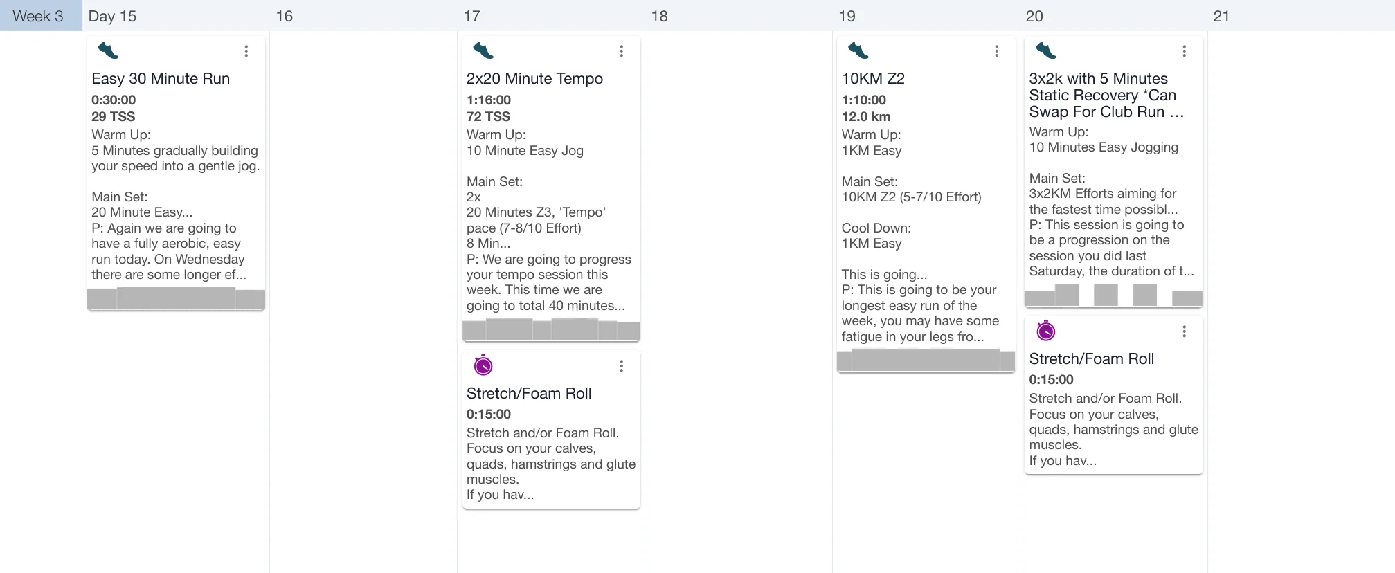 Training sessions are written in an optimal order for improvement, progression and recovery, but plans change and when they do you can move sessions across days and weeks with a premium training peaks account.