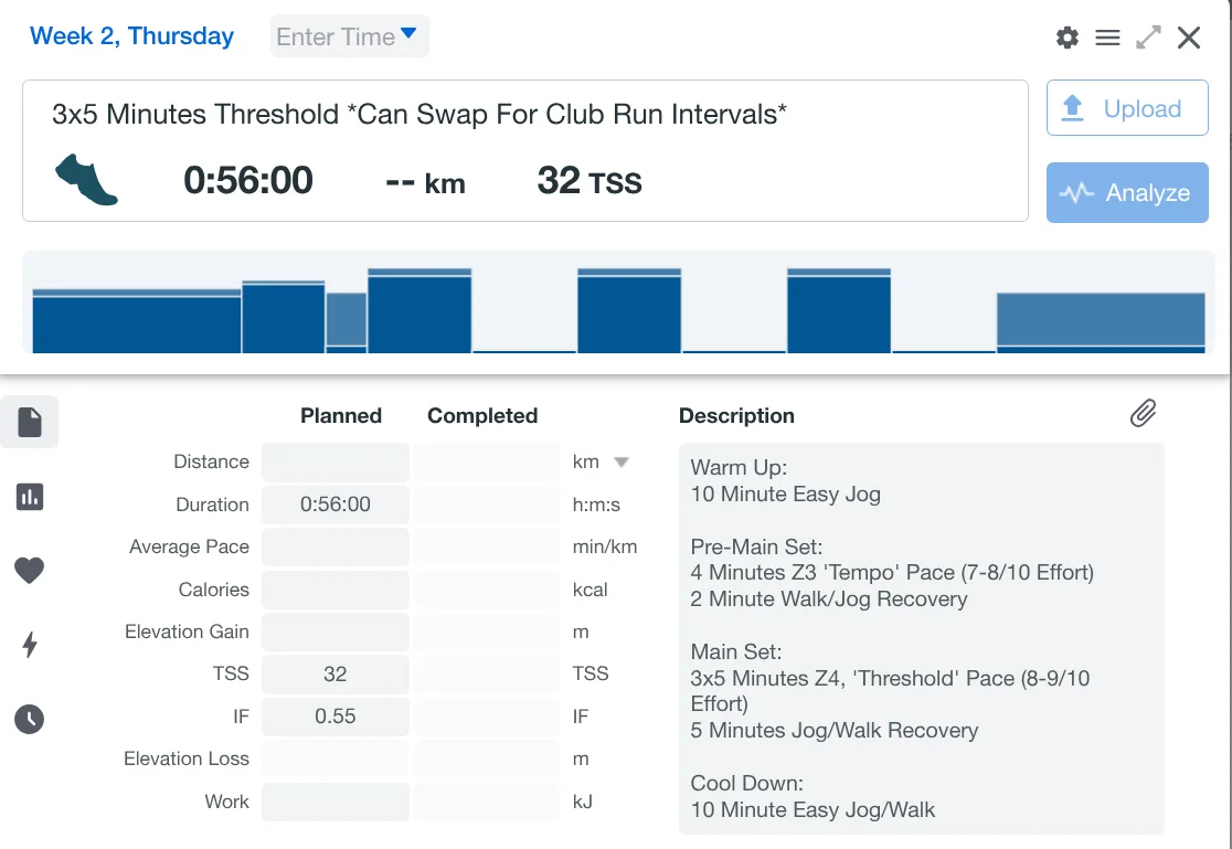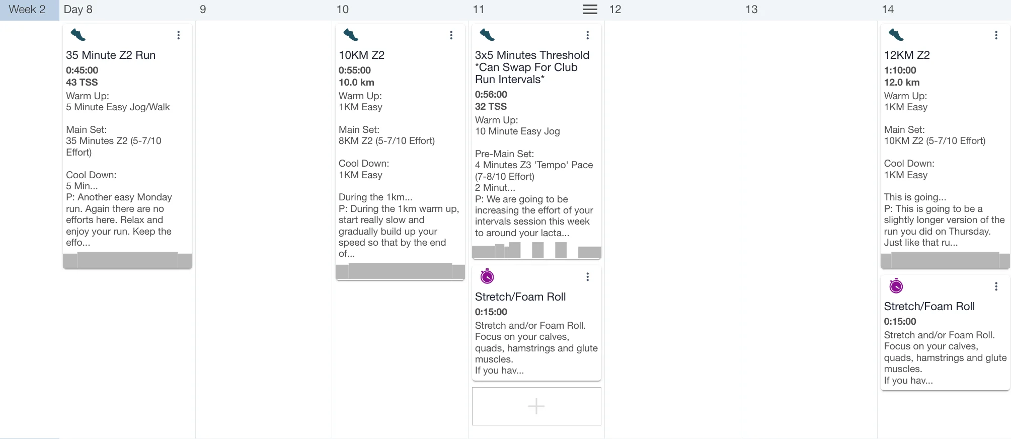 Training sessions are written in an optimal order for improvement, progression and recovery, but plans change and when they do you can move sessions across days and weeks with a premium training peaks account.